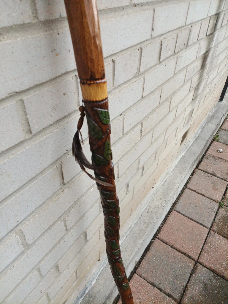 87Hand carved walking stick made out of Willow cured for two years everything is natural and the cut at the top was done by a beaver