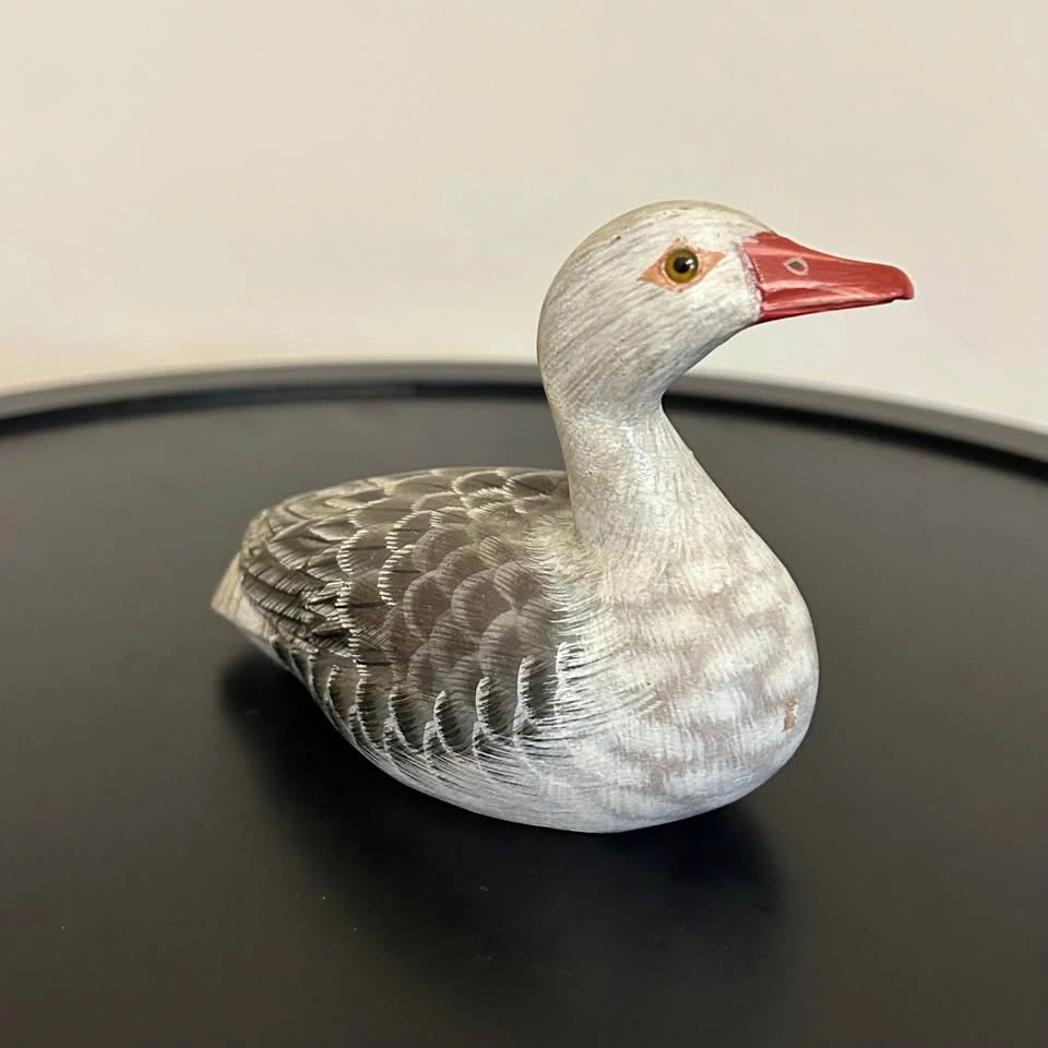 Hand-Carved Wooden Duck/Goose Miniature Decoy – Folk Art 3”