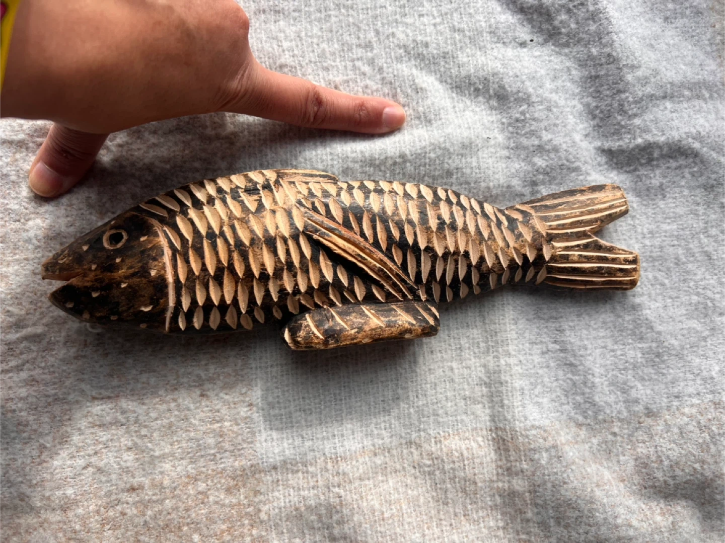 13Here's a hand carved wooden fish. It has a unique design and would make a great decorative piece for your home