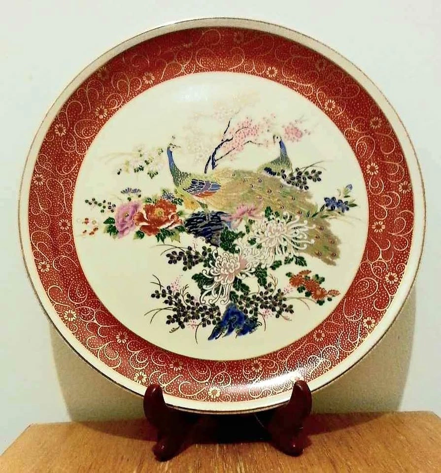 65Vintage, Hand Decorated Royal Satsuma Japanese Peacock Porcelain Plate. Mint Condition, no chips or cracks Please check out my other rare collectibles!