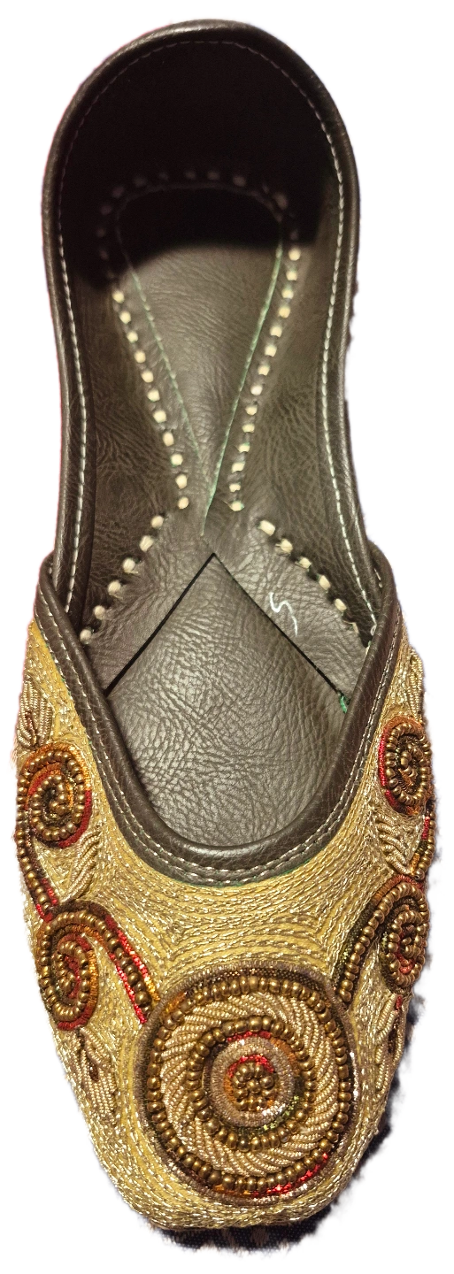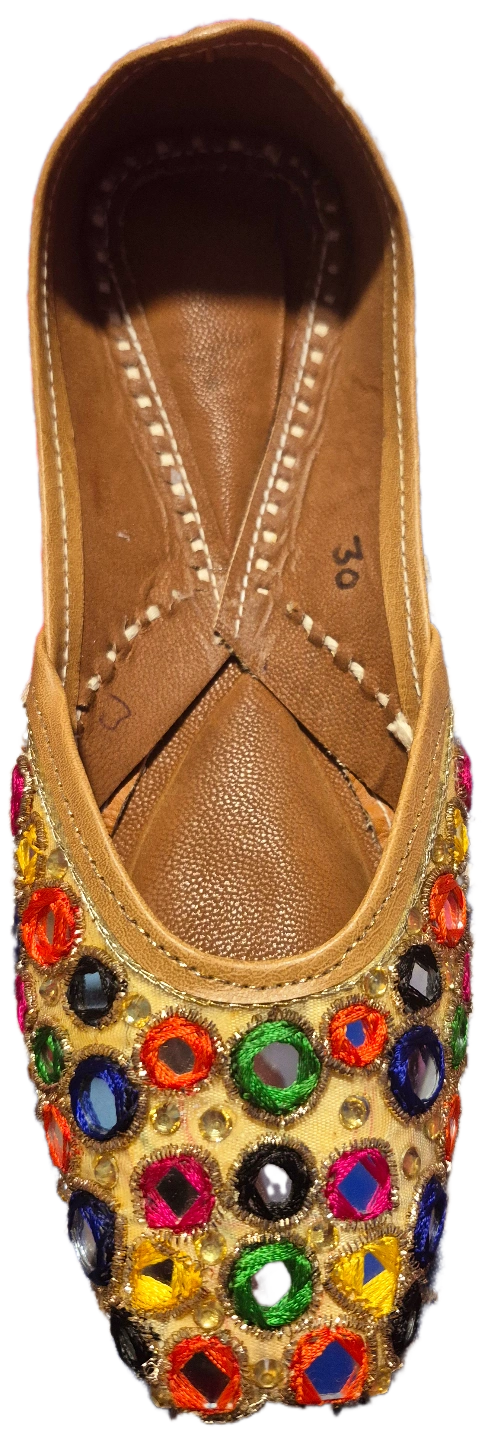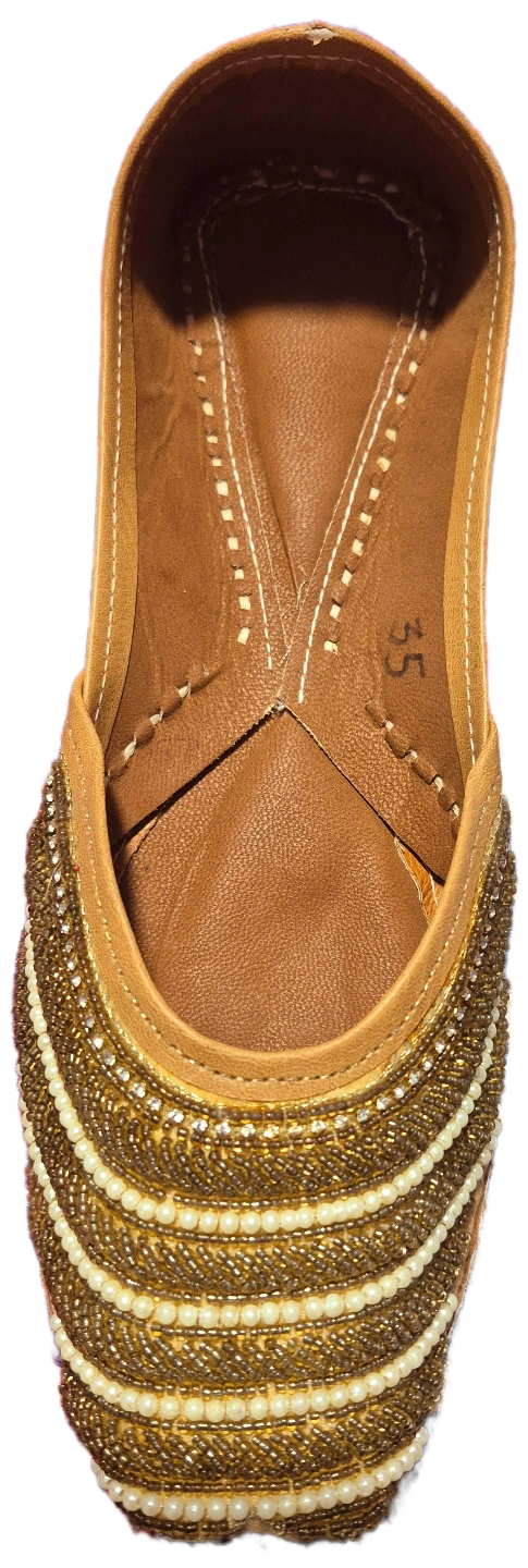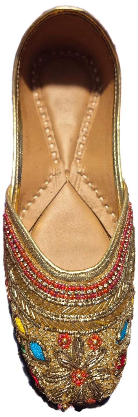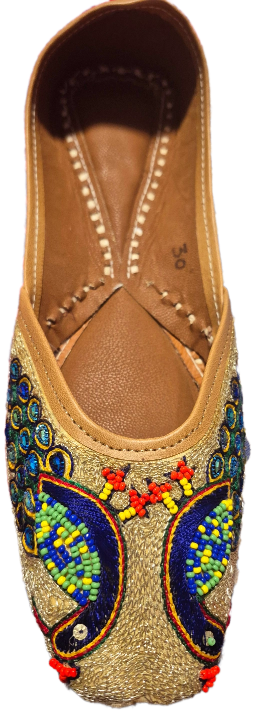 65Beautiful, handcrafted punjabi traditional footwear. Leather upper with intricate bead and embroidery detailing. Unique designs. Comfortable and stylish. Various colours available.