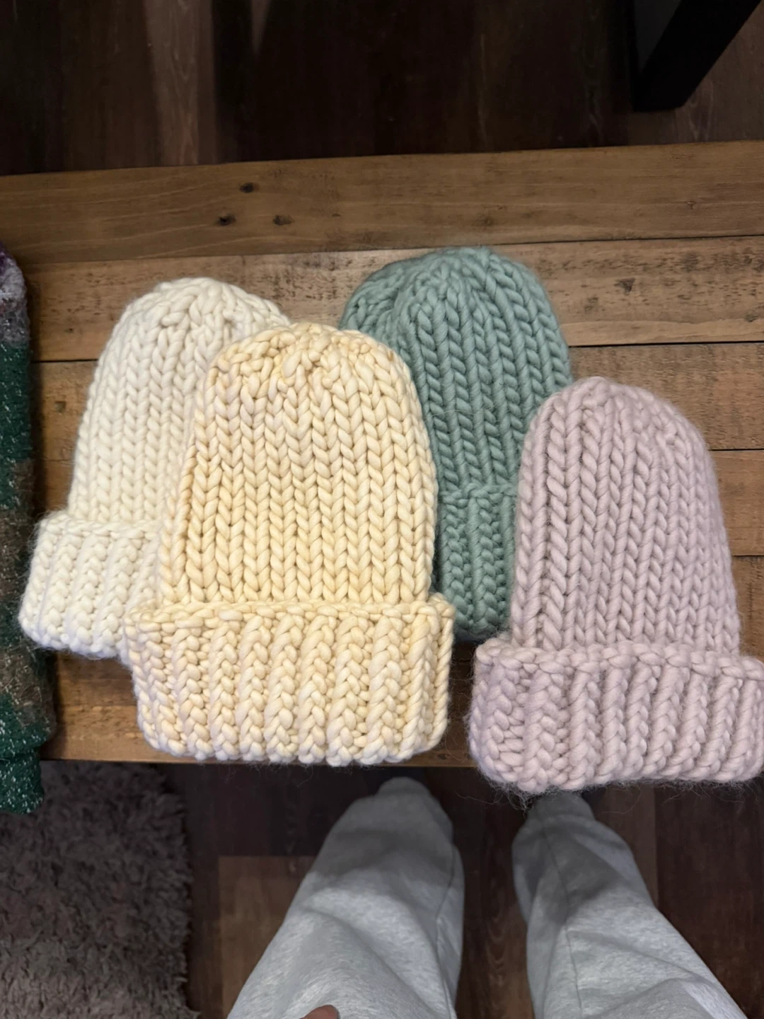 10Selling a cozy, hand-knitted beanie in multiple colours! It's perfect for keeping warm during the colder months. It's in great condition!