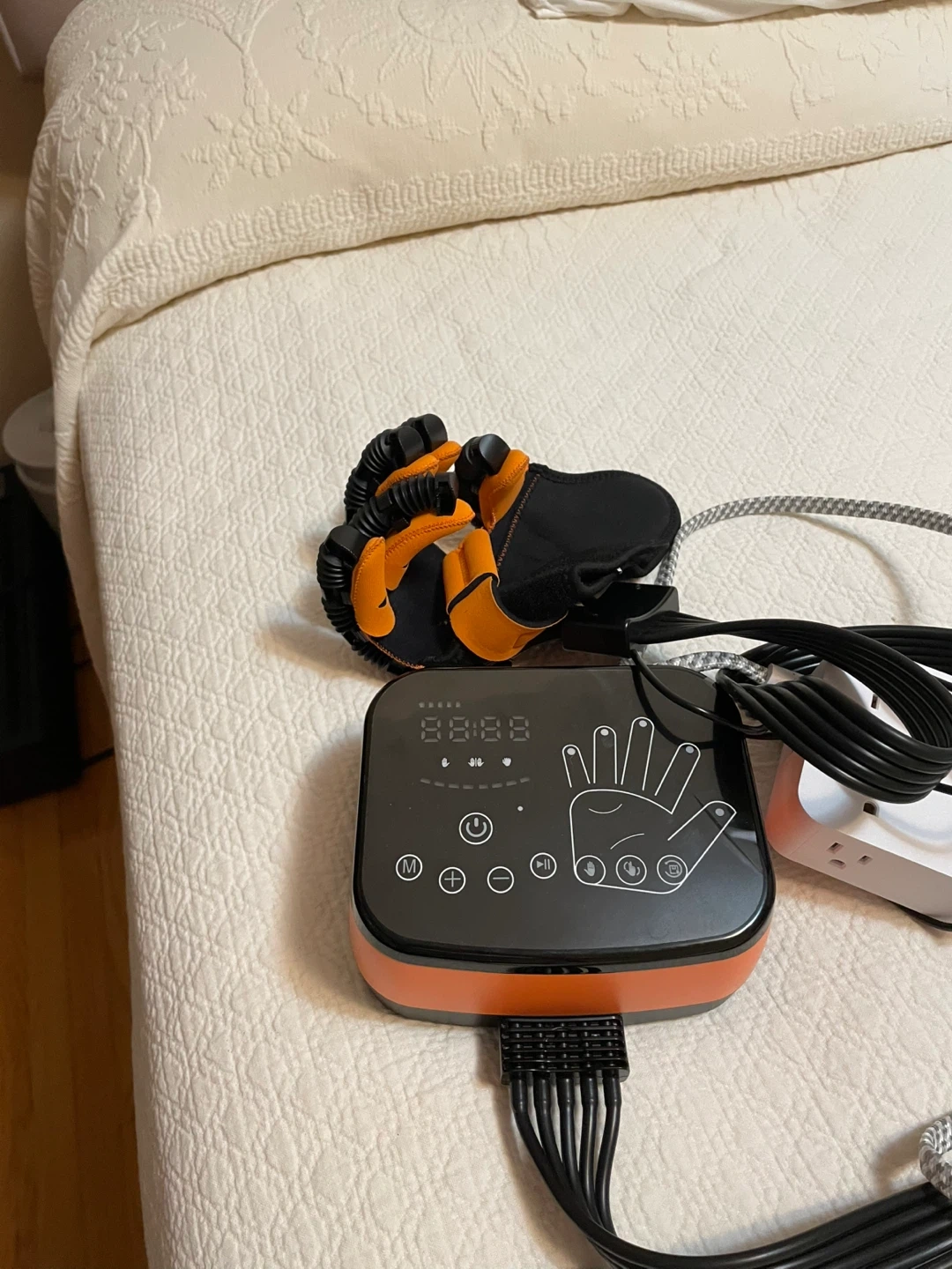 Selling a hand massager that comes with glove. Right handed. It looks like it's in great condition and ready to help relieve some stress!. Also helps individual who have had a stroke or broken hand to gain back strength