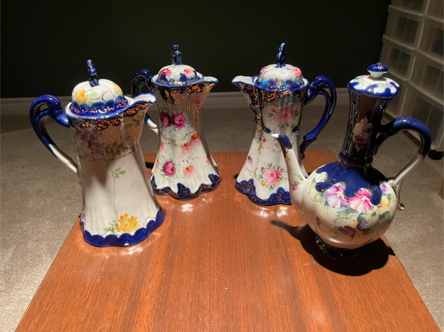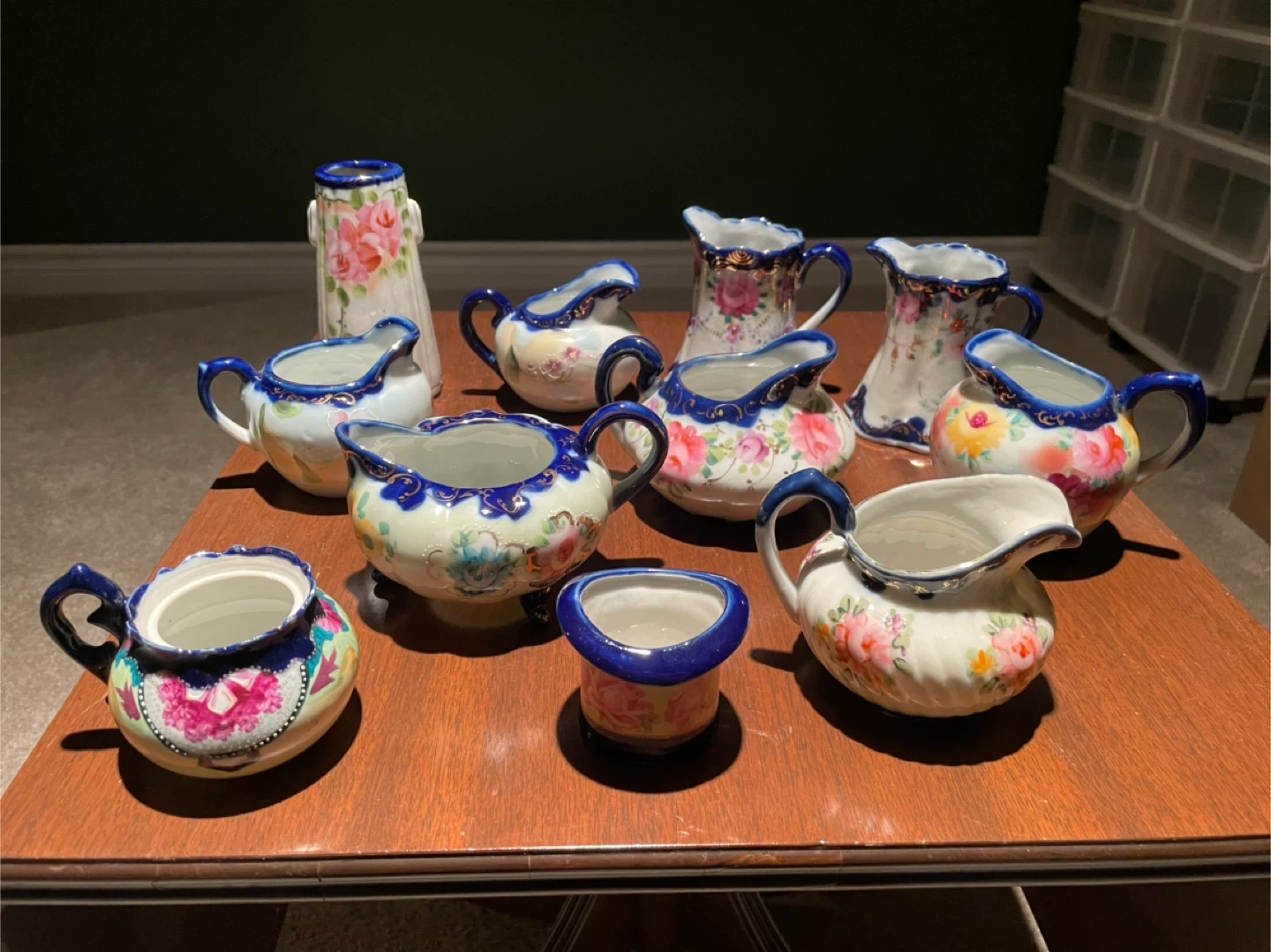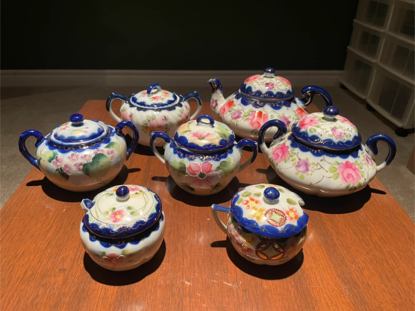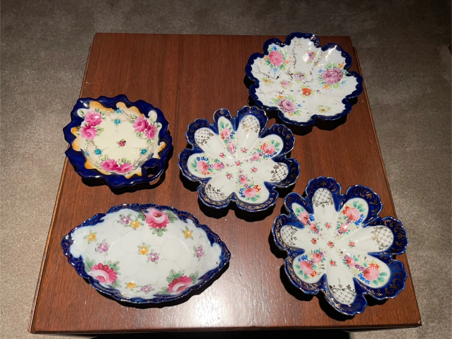 10Beautiful collection of unmarked Nippon cobalt blue China dishes. Made in Japan. 58 pieces total. Make me an offer for the whole set. Or I will sell pieces individually for anywhere from $5-$30 depending on the piece. More photos available upon request. One small dish has a broken handle, but no other damage on everything else.