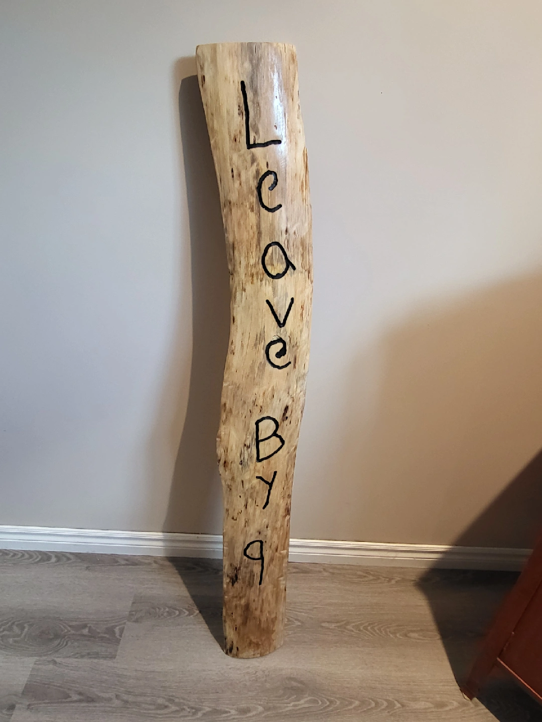 Unique handcrafted wooden sign with 'Leave By 9' painted on it! It's about 54 inches tall and 6.5 inches wide. A perfect addition to your home decor!