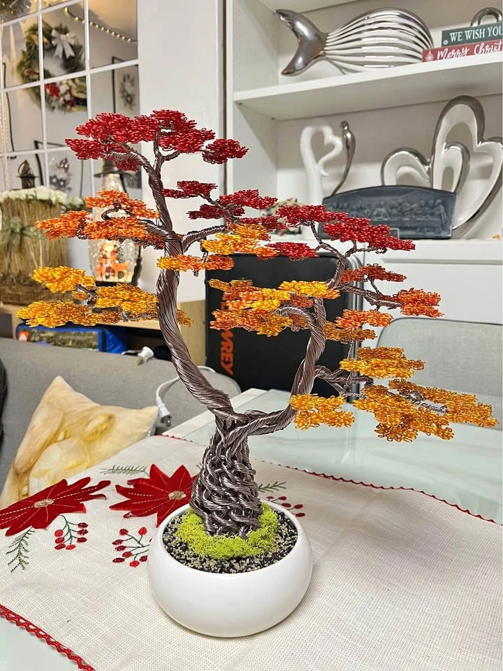 76πβ¨ βBring Autumn Indoors with this Handmade Wire Bonsai Tree!β Bring the beauty of autumn into your home with this handcrafted aluminum wire bonsai tree. π³π Each tree is carefully twisted and shaped by hand using durable aluminum wire, featuring warm fall colors that capture the essence of autumn. This unique piece is perfect as home dΓ©cor, a centerpiece, or a thoughtful gift. β¨ Features: β’ Handmade aluminum wire bonsai tree β’ Autumn-inspired color palette (reds, oranges, yellows, copper tones) β’ Mounted on a stable base for display β’ Unique one-of-a-kind art piece β no two trees are alike π Approximate Size:15β inches tall x 13.5β inches wide π Pickup only Add a touch of elegance and artistry to your space with this stunning autumn bonsai tree.