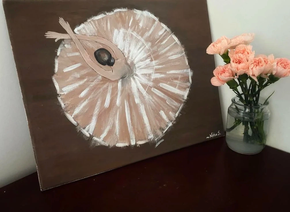 5Hsndmadel acrylic painting of a ballerina in a tutu. Perfect for living rooms, bedrooms, or as a unique gift. Medium: Acrylic Size: 12.5x 16 inches Condition: Brand new, never displayed Style: Warm, expressive, and elegant Artist: Painted by me (original work) The painting is ready to display and adds a calm, artistic mood to any space. Price is negotiable—feel free to message me! 😊