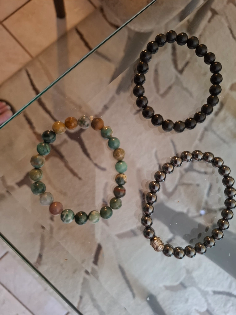 15Bracelets made of stone beads. Various colours, different sizes. You will find these pieces are perfect for layering. price : $15.00 each (negotiable) Reasonable offers only please