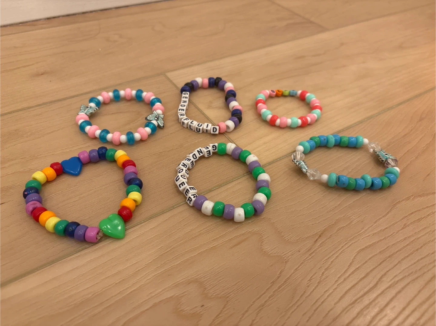 143Selling a set of 6 handmade beaded bracelets! They're all different colours and designs, and some have words on them. Perfect for adding a pop of colour to any outfit!