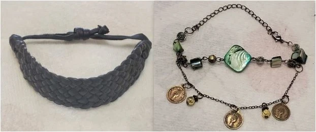 18Selling a unique handmade Artisanal bracelet! It features a mix of beads, a shell-like square, and Queen Elizabeth II coin charms. The chain is a dark metal colour. It's a beautiful and eye-catching piece of jewelry! 15$ for two Door pickup