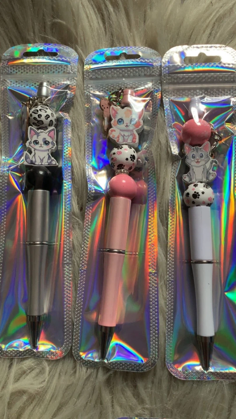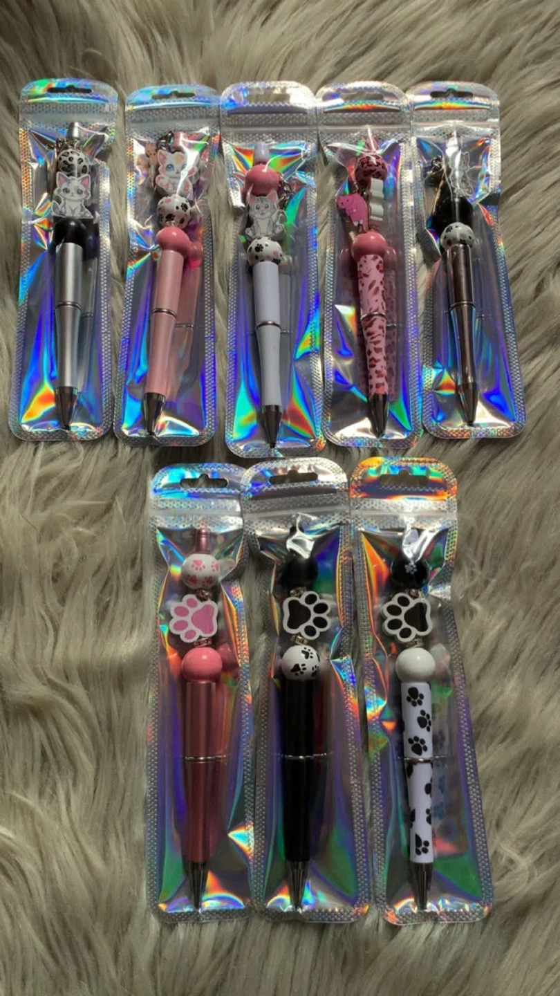Check out these adorable handmade beaded pens by my Daughter! They come in a variety of cute designs, perfect for adding a bit of fun to your writing or as a unique gift. Each pen is carefully crafted with colourful beads and charms.