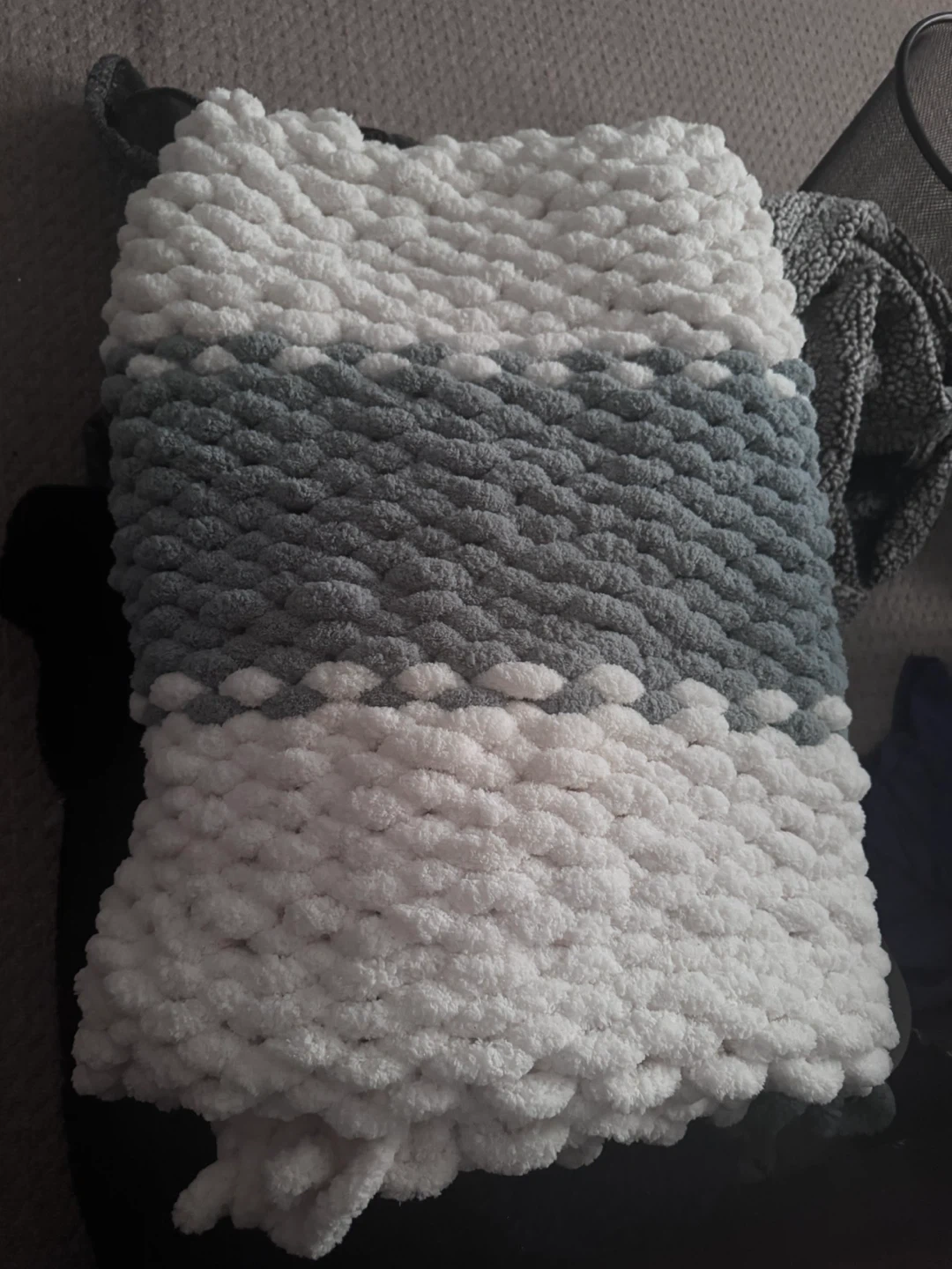 84Selling a cozy, handmade chunky knit blanket! It features a lovely combination of white and sage colours. Perfect for adding a touch of warmth and style to your home AVAILABLE IN COLOUR & SIZE OF YOUR CHOICE