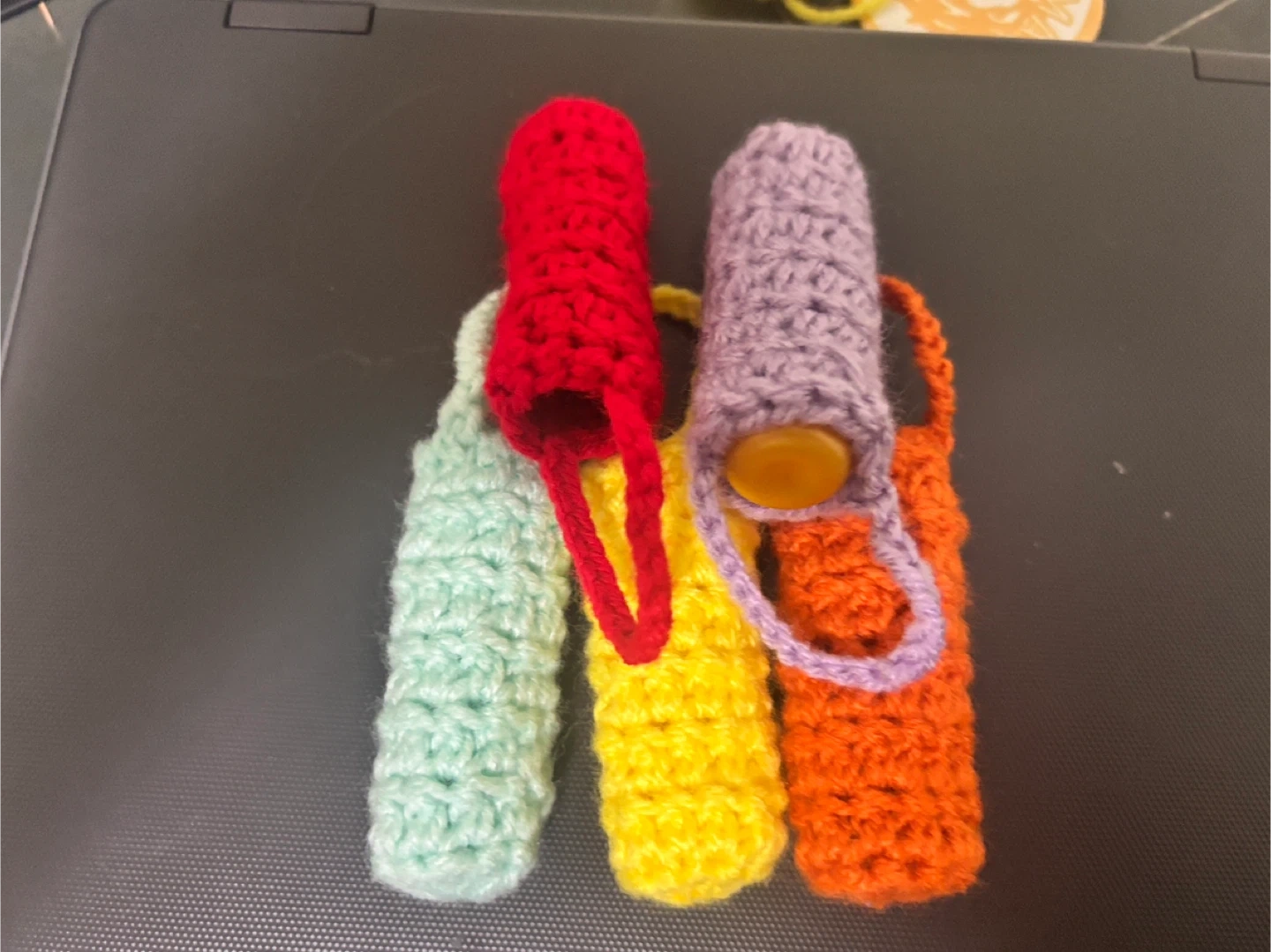 62π Handmade Crochet Lip Balm Holders Keep your lip balm easy to find and super cute with these colorful, handmade crochet holders! π Each one is: β¨ Soft, durable, and fully crocheted by hand β¨ Comes with a built-in loop to attach to keys, bags, backpacks, or lanyards β¨ Fits standard lip balm/chapstick sizes β¨ Available in bright, aesthetic colors: Red, Mint Green, Yellow, Orange, and Lavender Perfect for: β School β Work β Gifts β Small business goodies β Everyday use πΈ Price: 1 Lip balm holder for $3 or 2 Lip balm holder for $5 EACH PURCHASE CONTAINS KEYCHAIN HOOKS!!