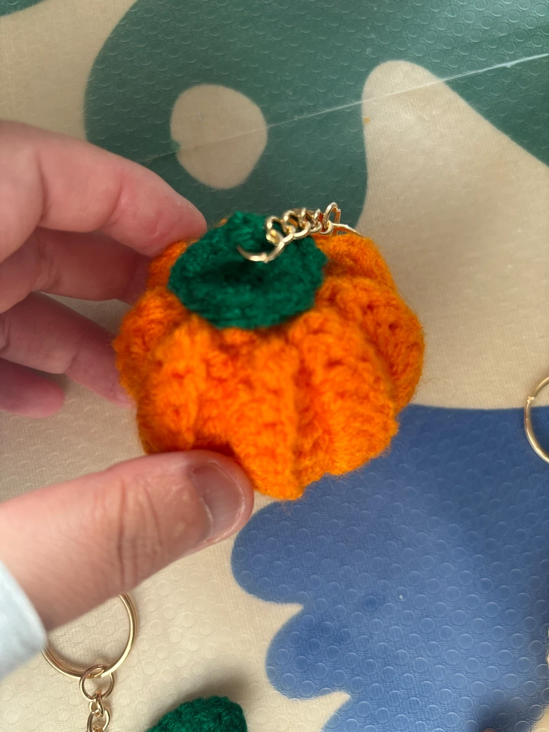 31Check out this adorable handmade crochet pumpkin keychain! It's a unique and charming accessory, perfect for adding a touch of autumn to your keys or bag. The vibrant orange and green colours really pop!