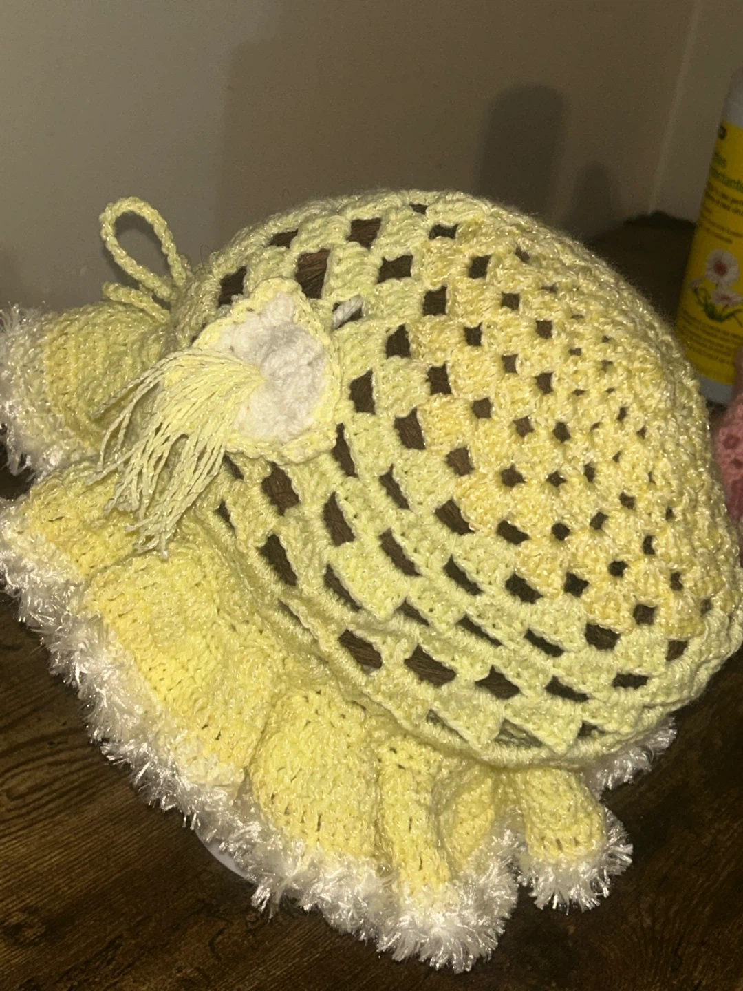65Selling these adorable handmade crocheted bonnets! One is pink and the other is yellow. They're super cute and would be perfect for a baby or toddler
