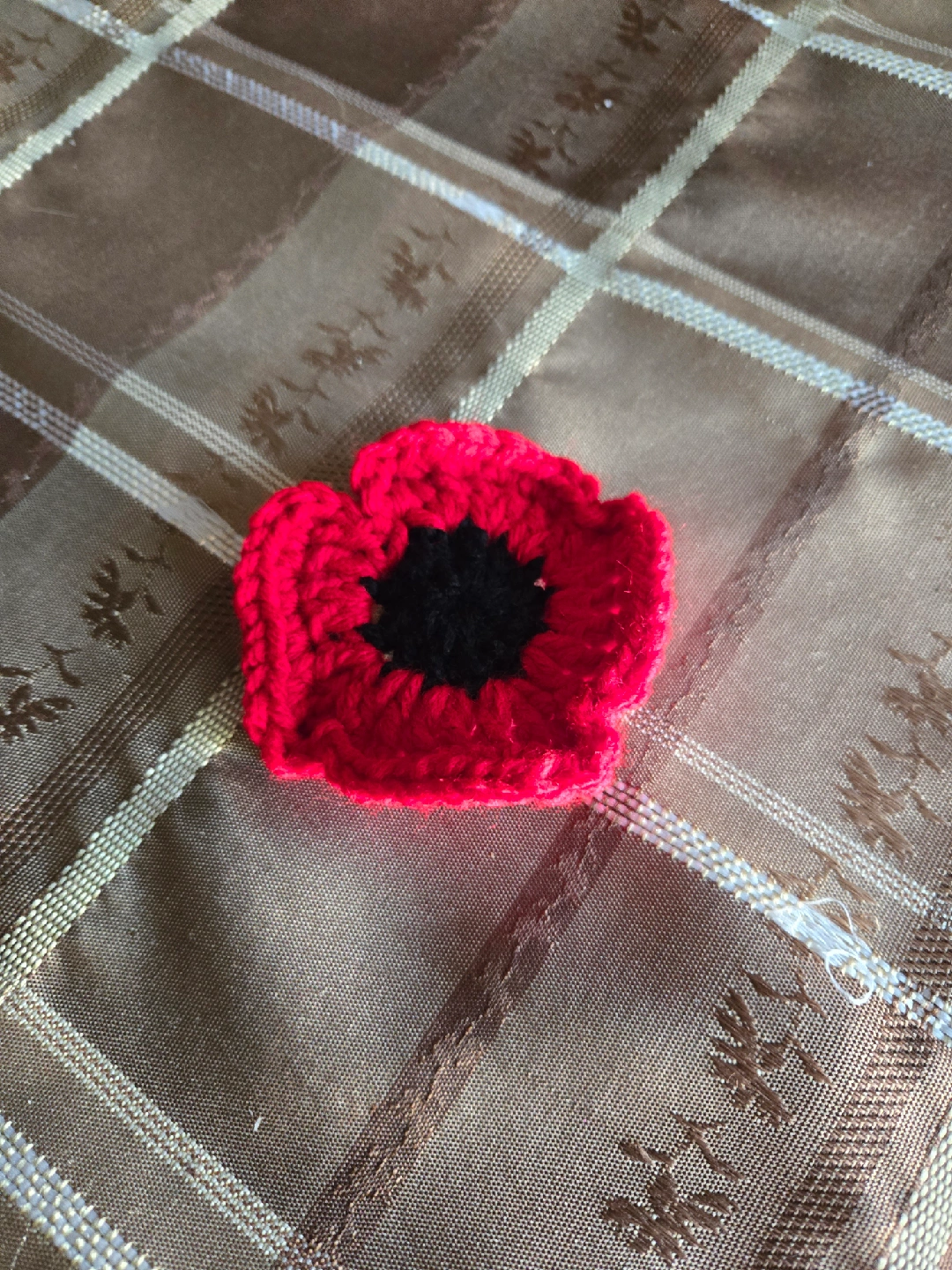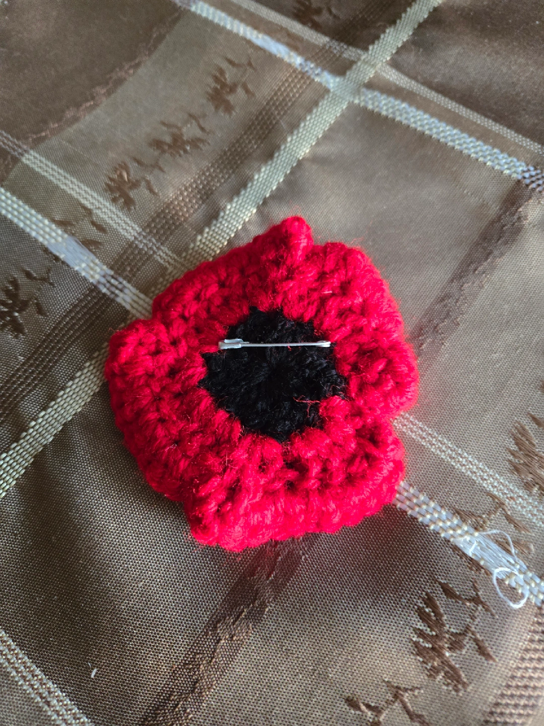 23Selling a handmade crocheted poppy pin. It's red with a black centre and has a pin on the back to attach to clothing. Perfect for Remembrance Day or any time you want to show your support. All monies will be donated to the Veterans