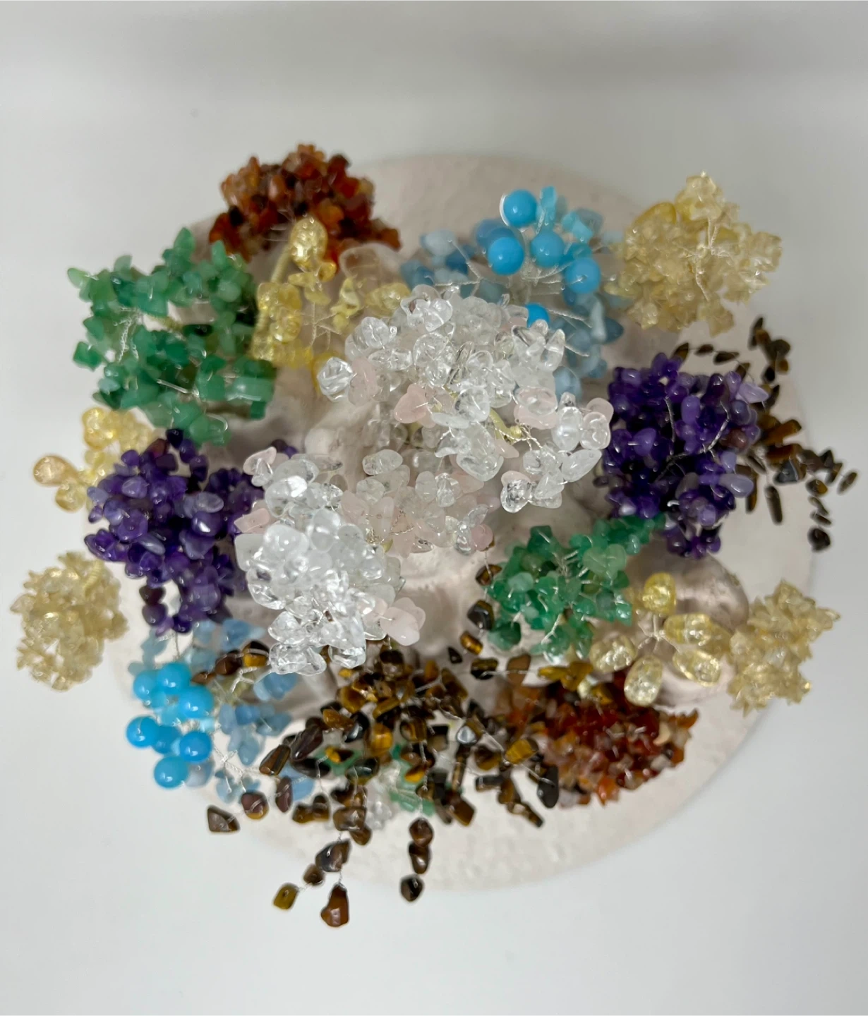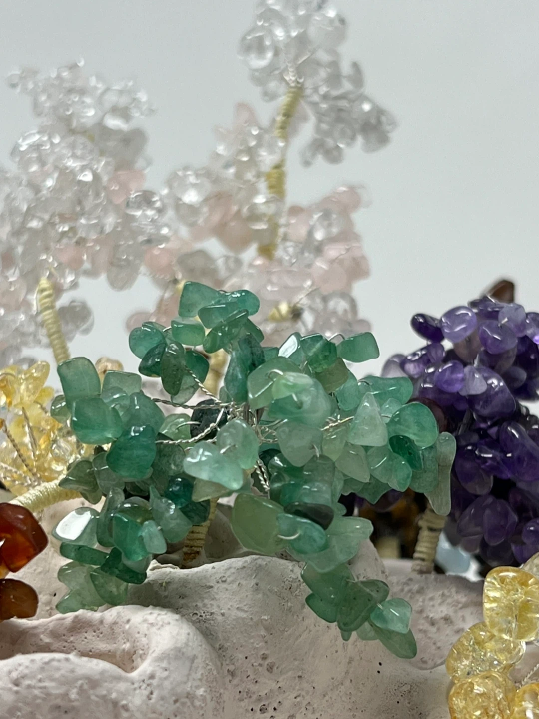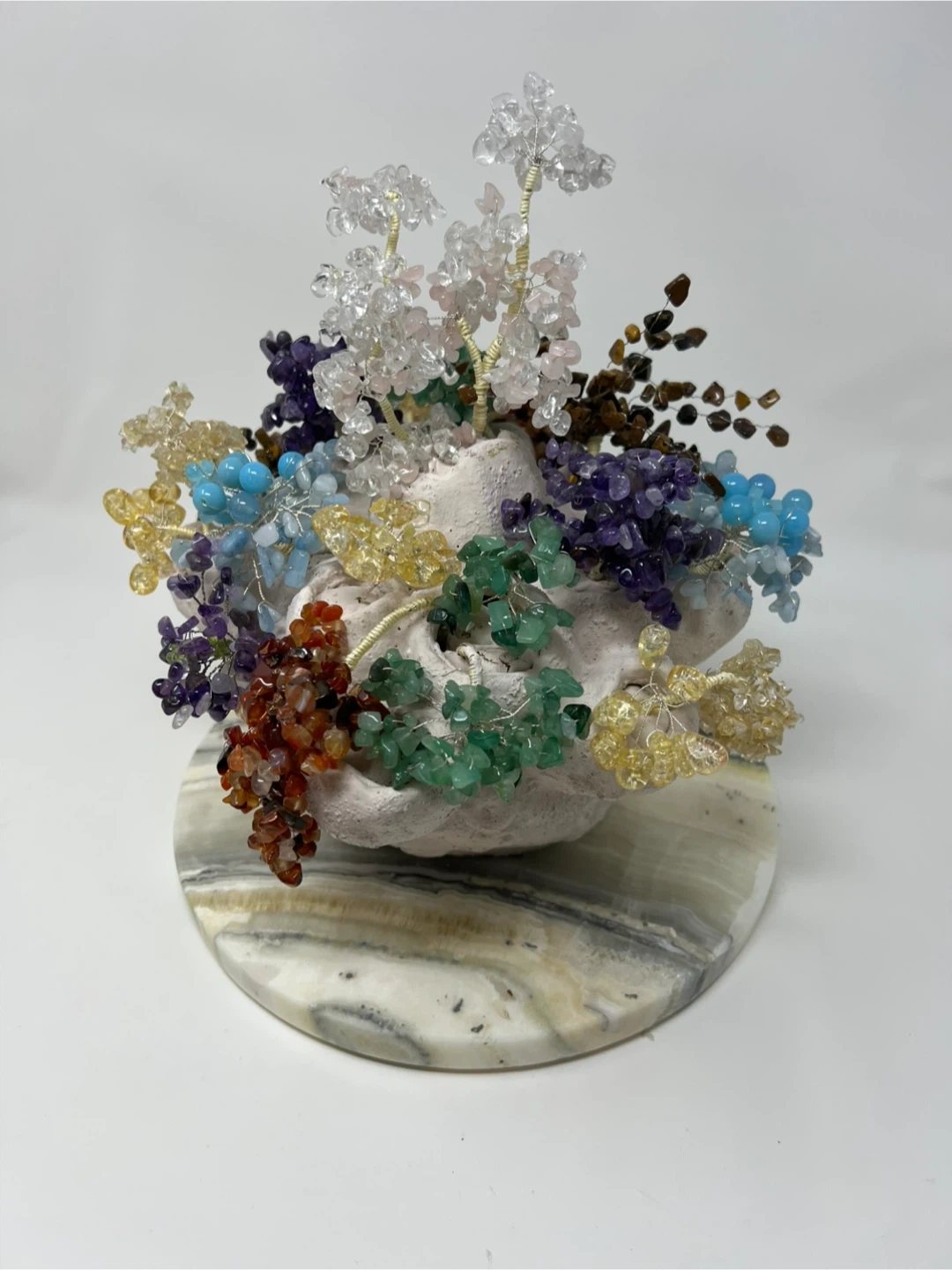 This beautiful crystal gemstone bonsai tree , seven chakras is a unique and colourful addition to any space! It features a variety of gemstones arranged to resemble a miniature tree. Perfect for adding a touch of nature and positive energy to your home or office. Base - onyx