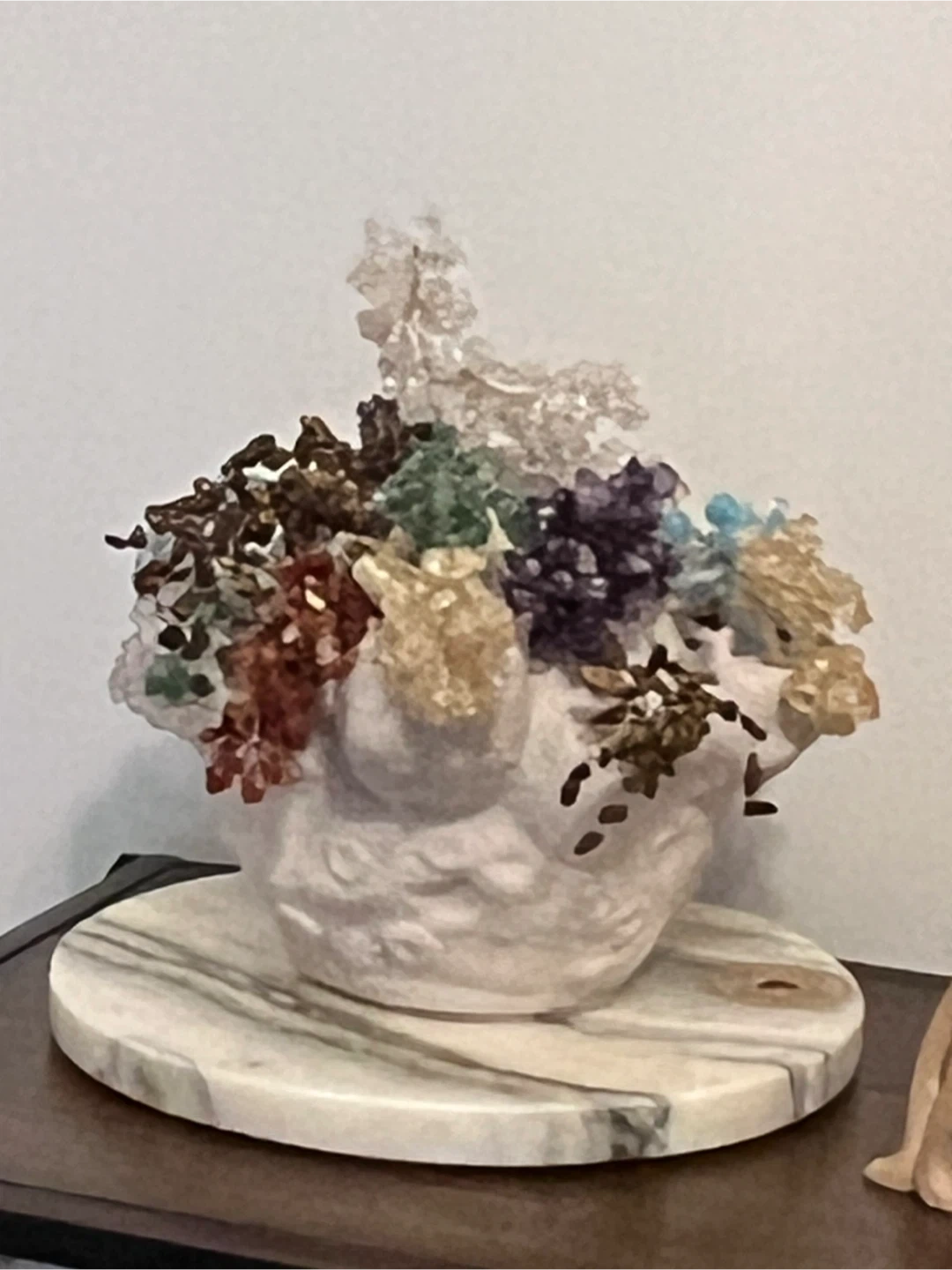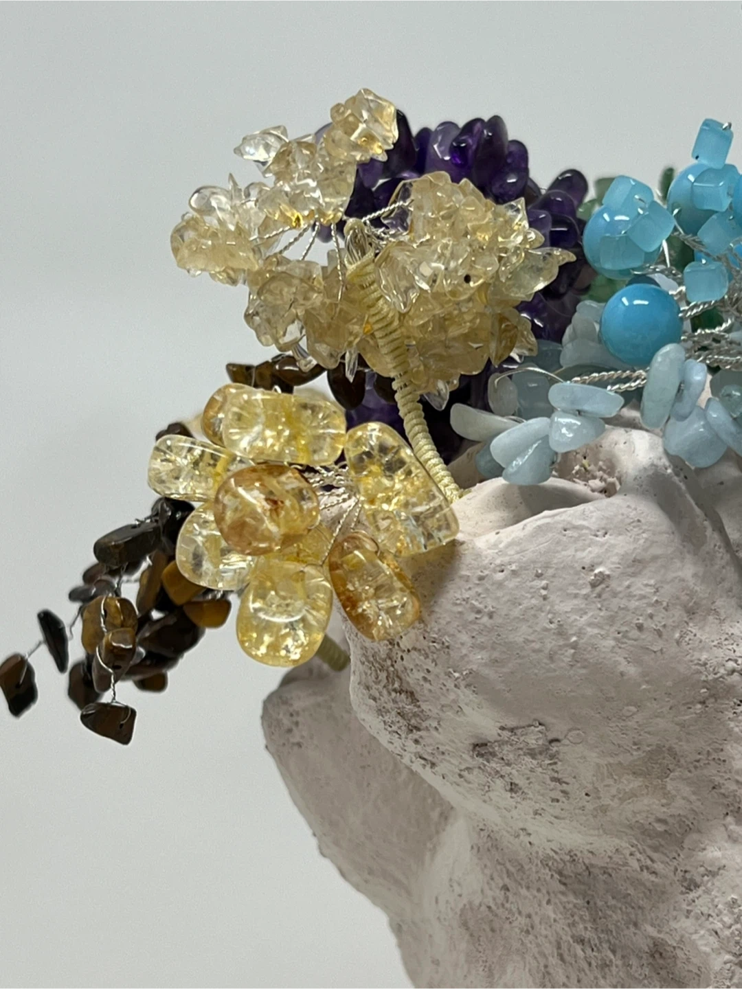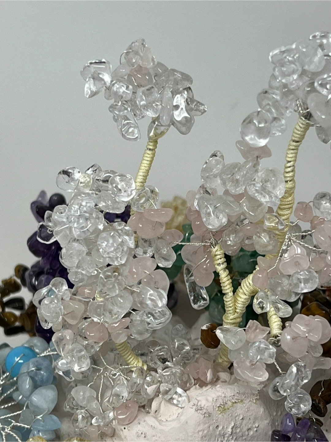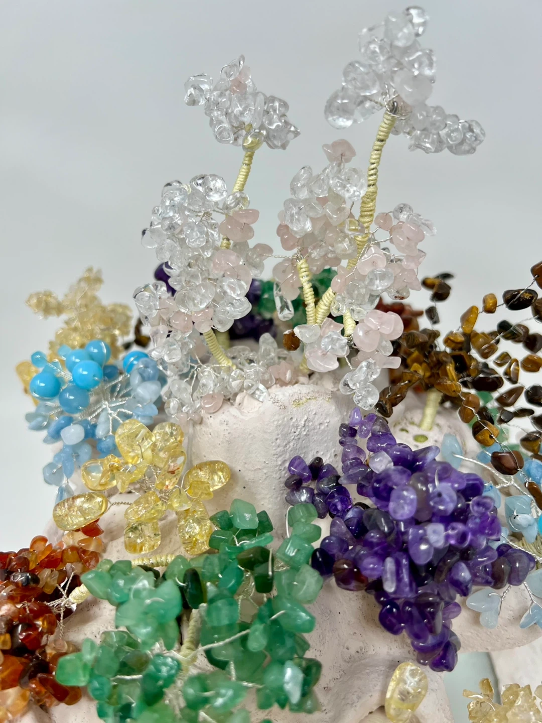 This beautiful crystal gemstone bonsai tree , seven chakras is a unique and colourful addition to any space! It features a variety of gemstones arranged to resemble a miniature tree. Perfect for adding a touch of nature and positive energy to your home or office. Base - onyx