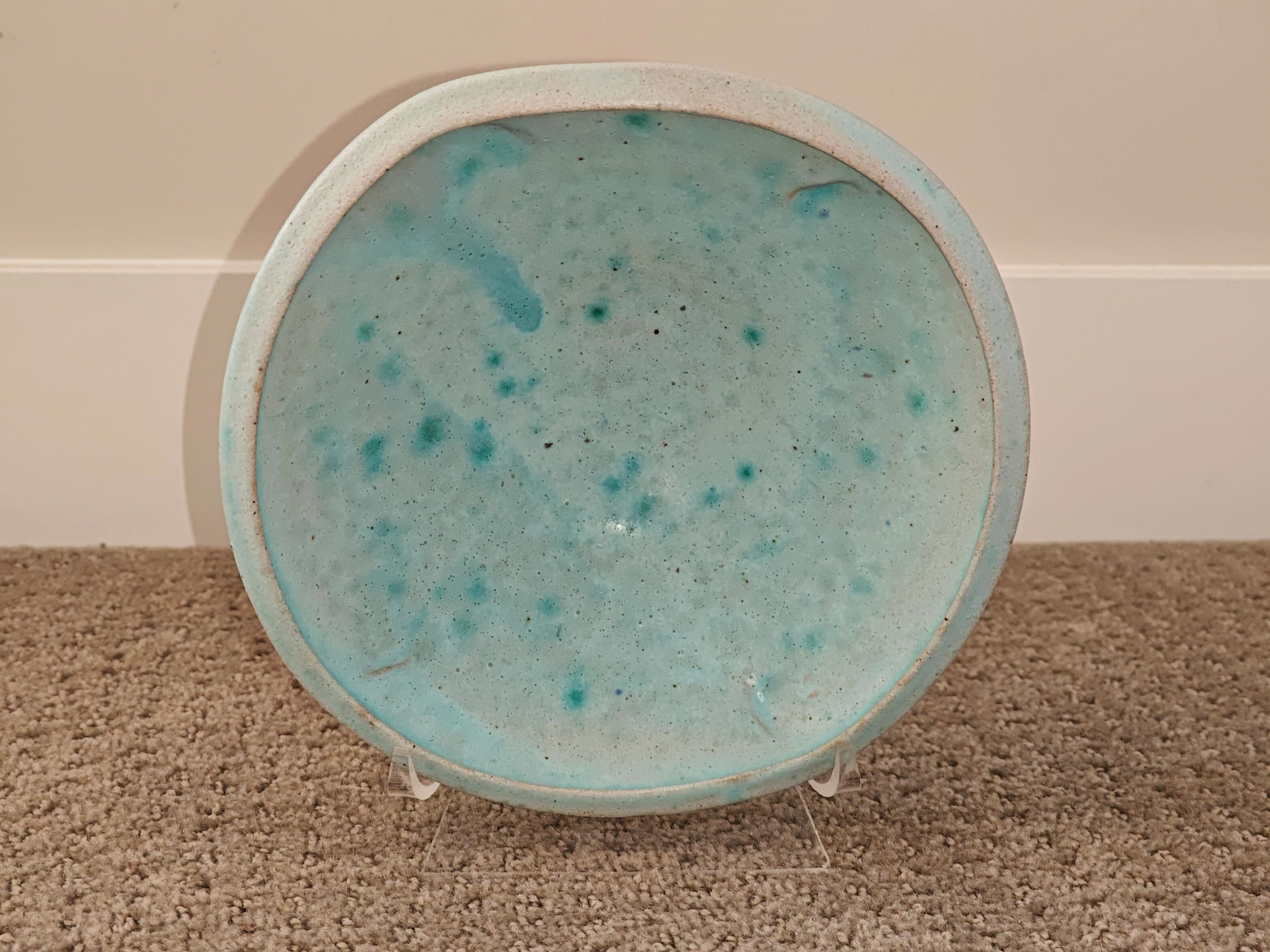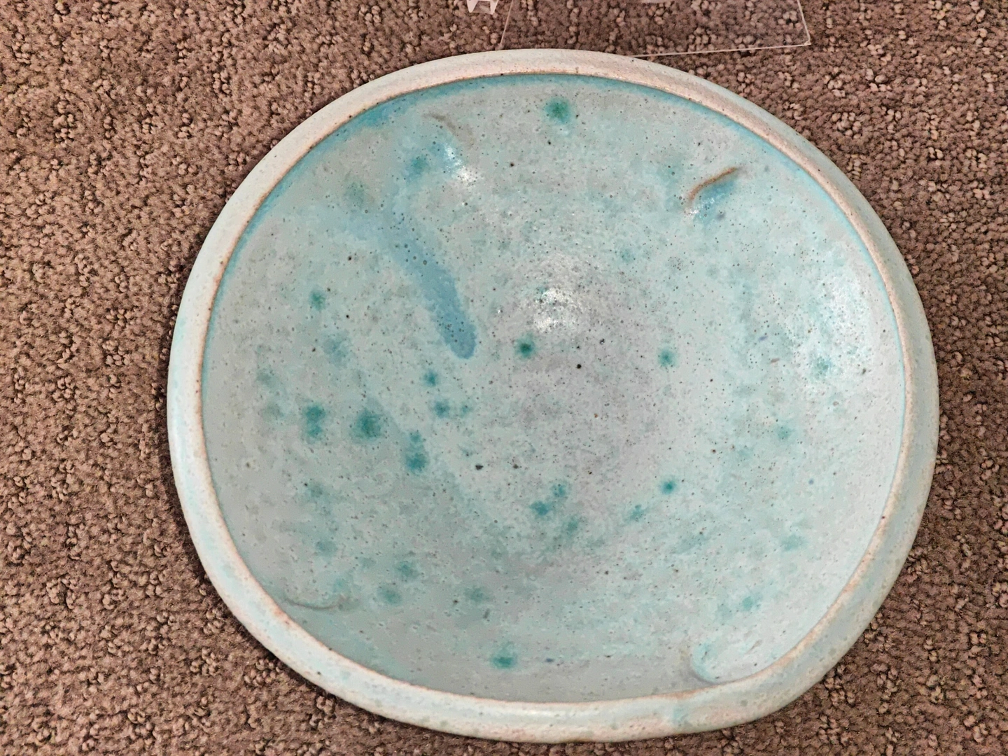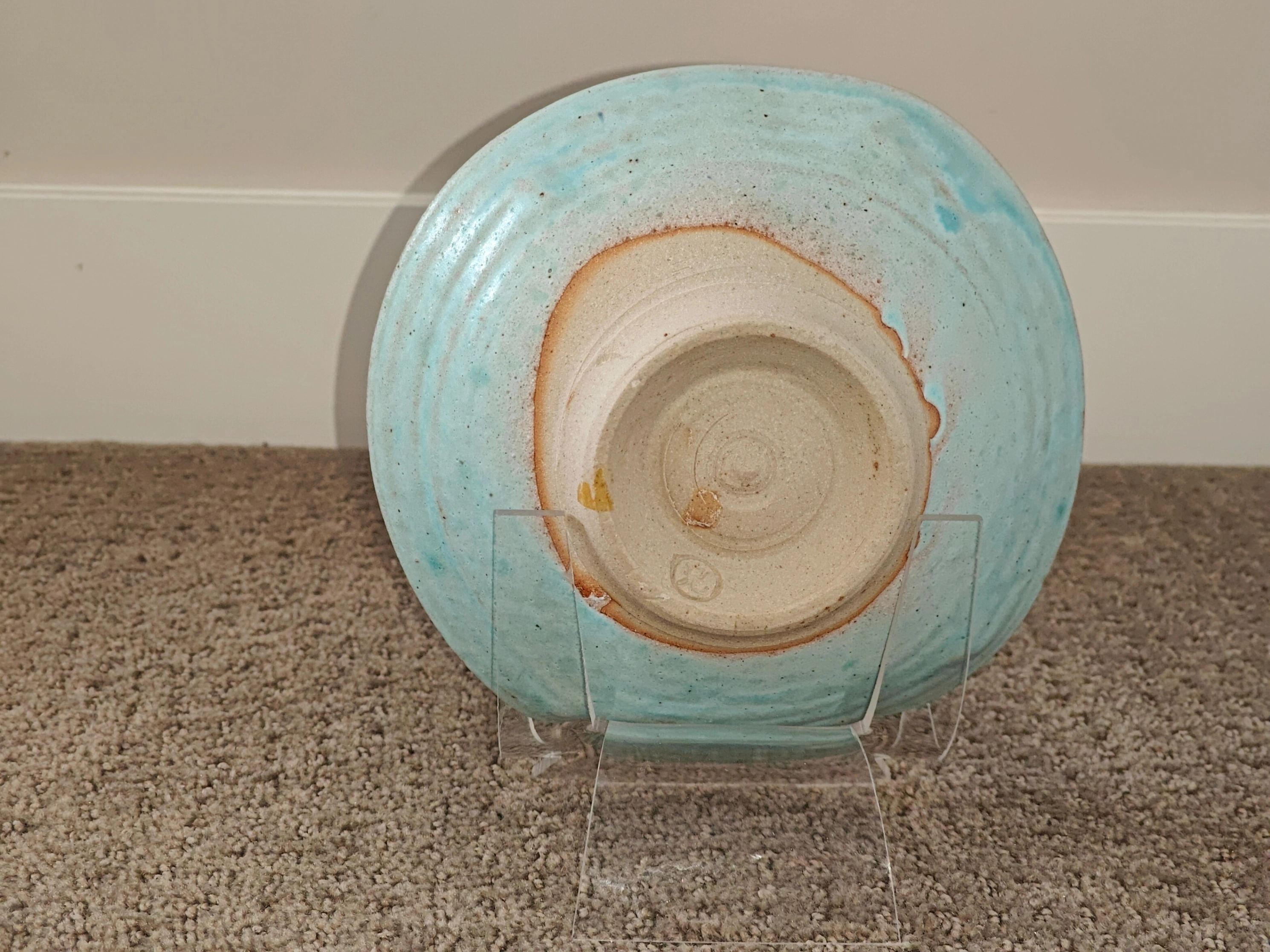 174I am selling a Handmade Decorative Blue Cloud Water Nature Bowl with a Plastic Bowl Stand in excellent condition. Hand-painted ceramic bowl where the artist aims for a unique and unpredictable look. Artist stamp is located on the back of the bowl. The pattern on the plate appears to be organic and spontaneous. It's reminiscent of natural formations like clouds, water, or minerals. There are irregular shapes and swirls with variations in color intensity. Material: Ceramic Dimensions: * Diameter: 6-5/8" * Height: 2-1/8" Comes from a pet and smoke-free environment. Pickup in Mount Pleasant (NW Calgary)
