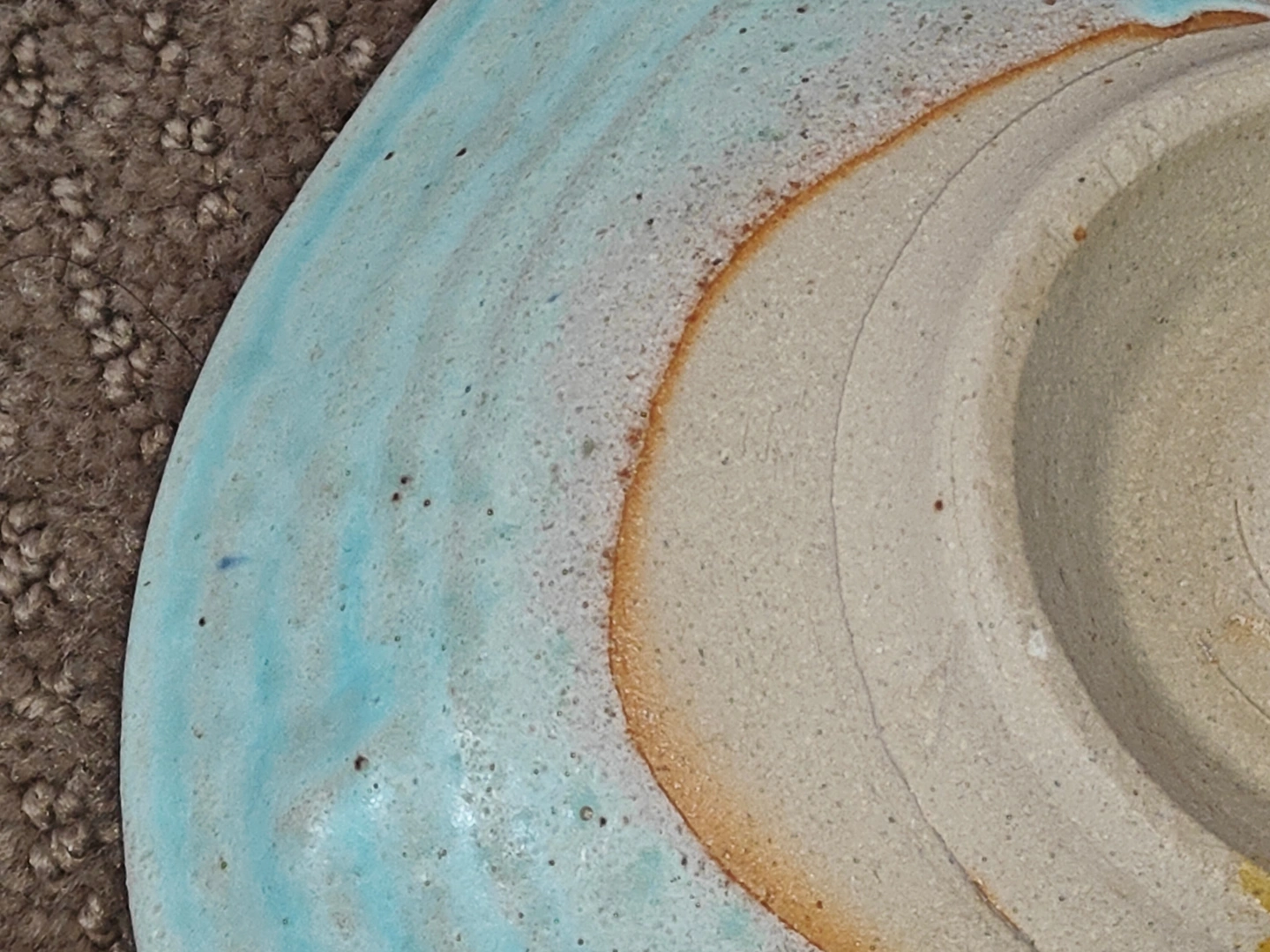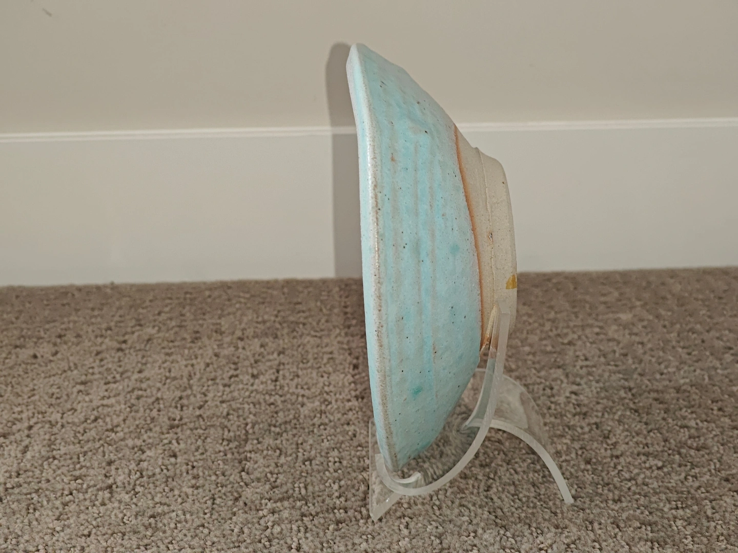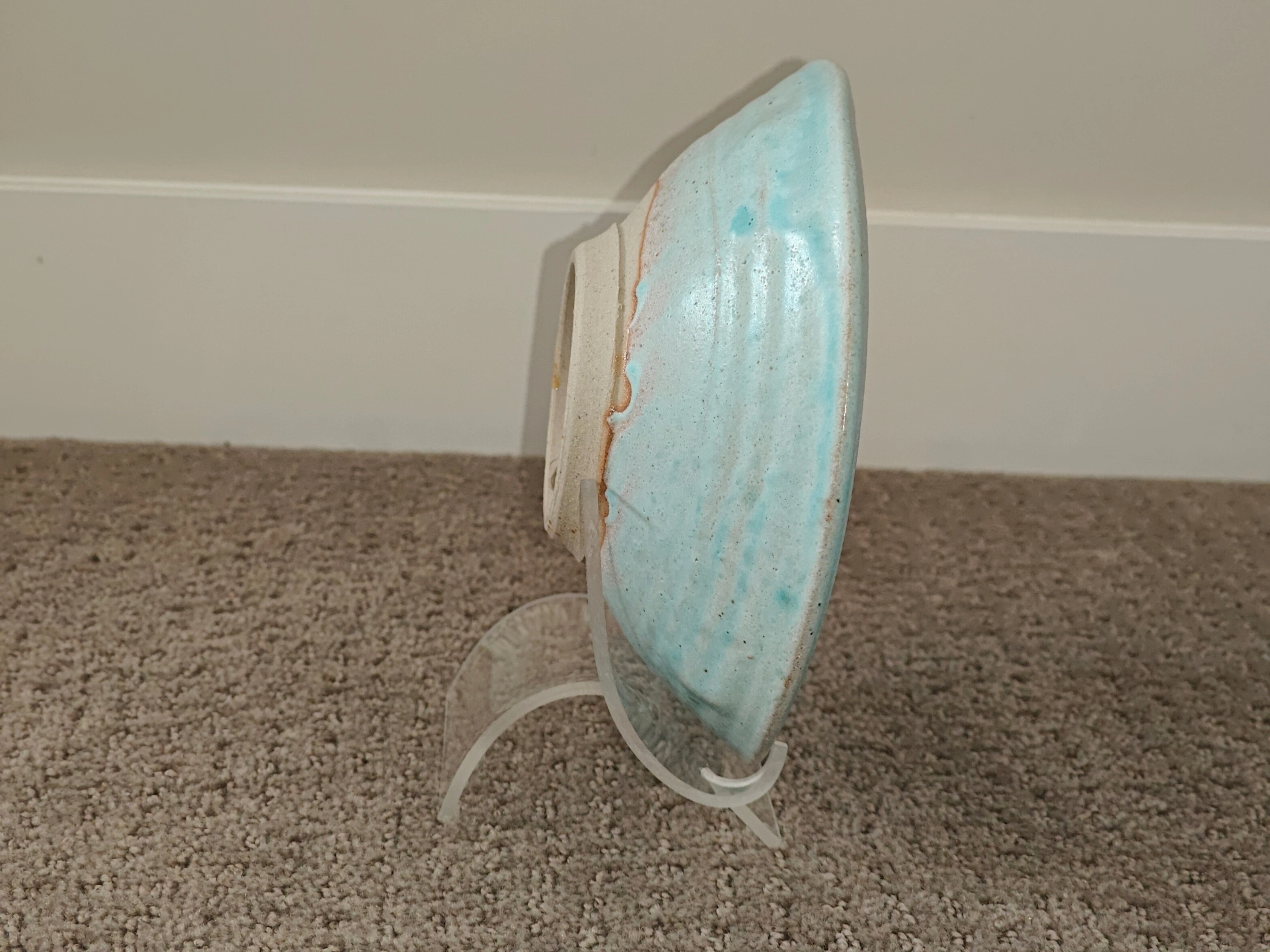 174I am selling a Handmade Decorative Blue Cloud Water Nature Bowl with a Plastic Bowl Stand in excellent condition. Hand-painted ceramic bowl where the artist aims for a unique and unpredictable look. Artist stamp is located on the back of the bowl. The pattern on the plate appears to be organic and spontaneous. It's reminiscent of natural formations like clouds, water, or minerals. There are irregular shapes and swirls with variations in color intensity. Material: Ceramic Dimensions: * Diameter: 6-5/8" * Height: 2-1/8" Comes from a pet and smoke-free environment. Pickup in Mount Pleasant (NW Calgary)