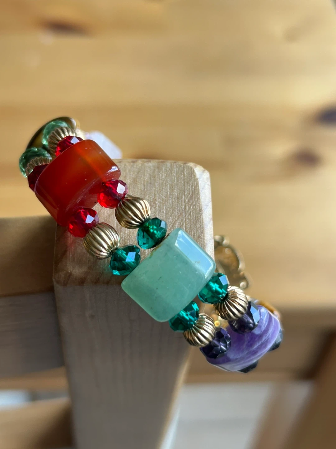 101Selling a unique, handmade stone bracelet. It features a mix of colourful stones and gold-tone accents.