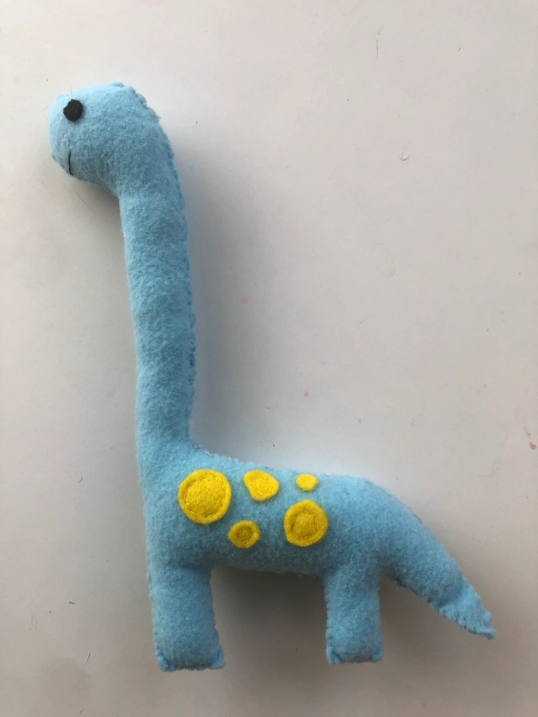 Blue and yellow hand made dinosaur stuffy In great condition hand sewed From a pet and smoke free home Porch Pick up