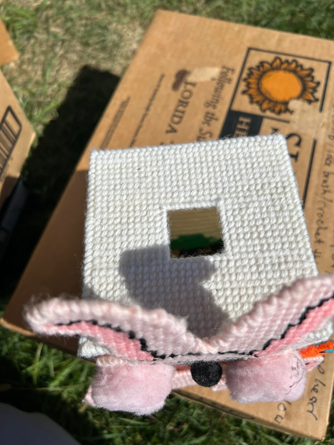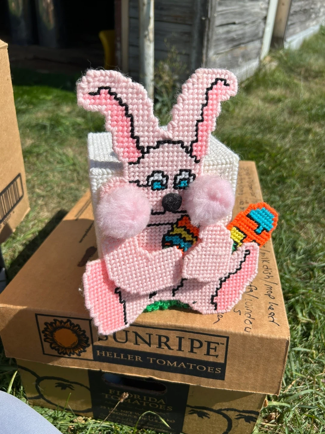 This is a cute, handmade Easter bunny tissue box cover! It's in great condition and ready to add a touch of spring to your home