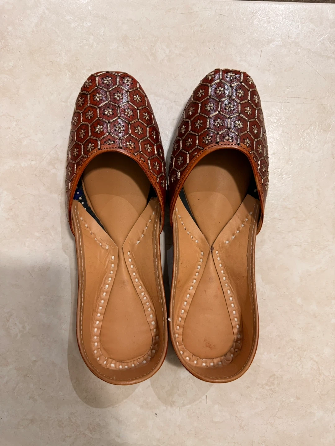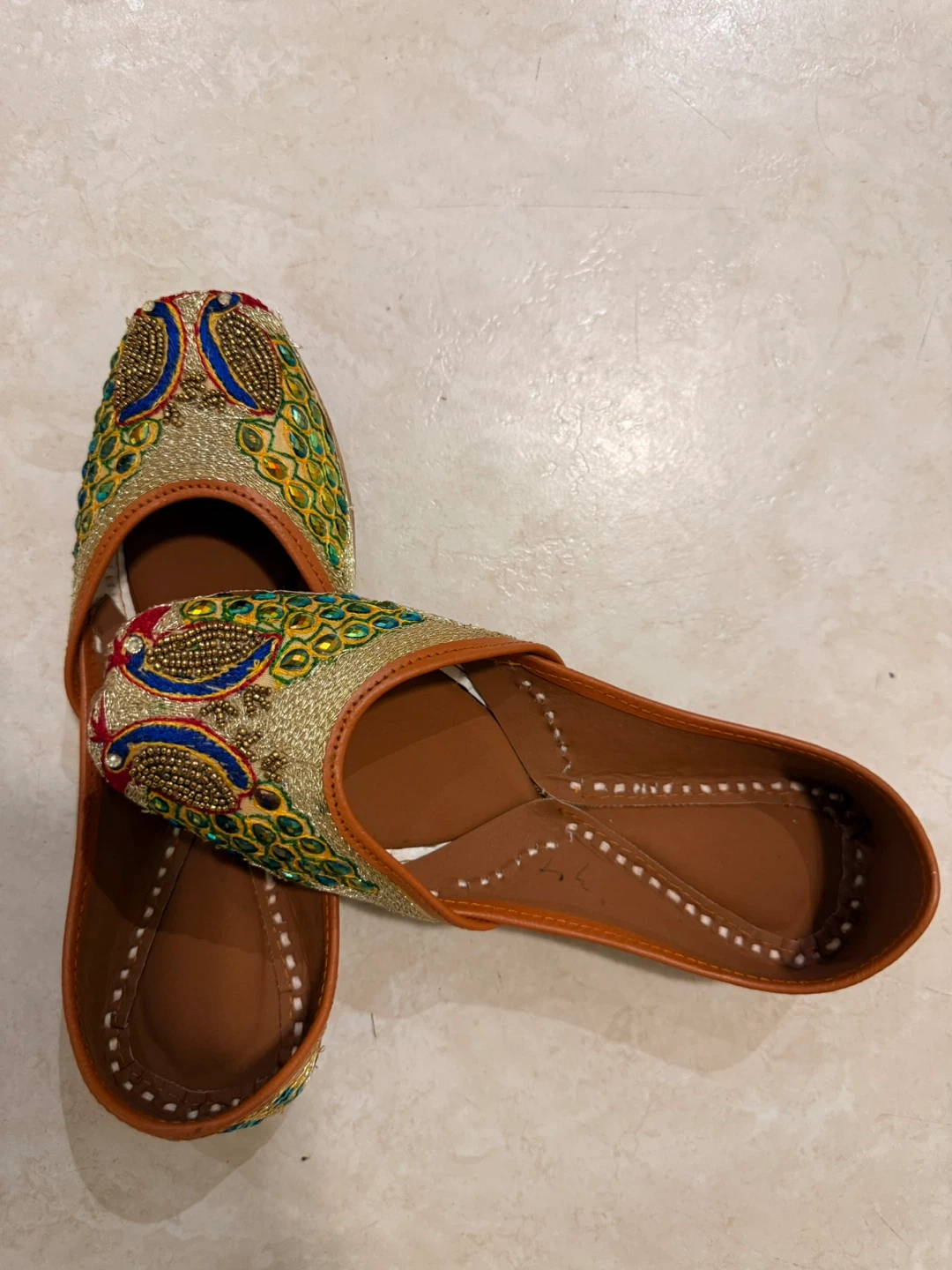 Selling a few pairs of handmade jutti shoes. These are traditional Indian/Pakistani footwear. They are in new condition and feature beautiful embroidery. Please see photos for details!
