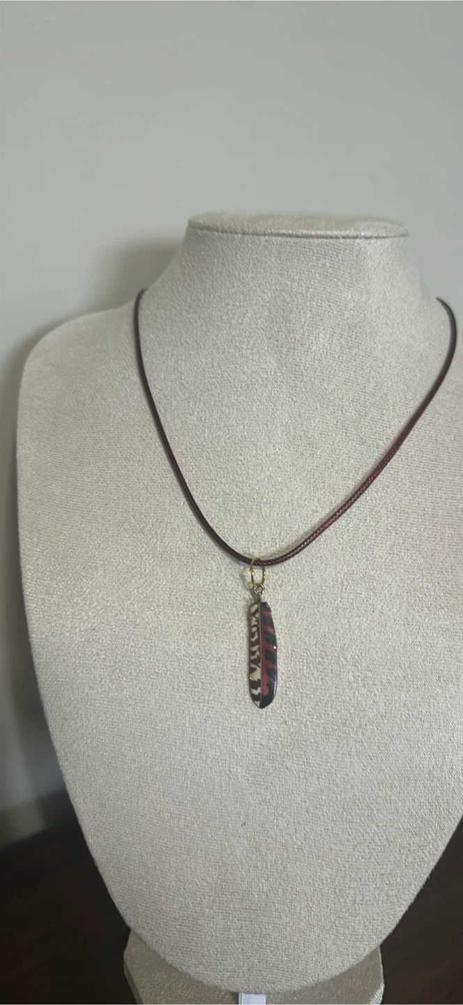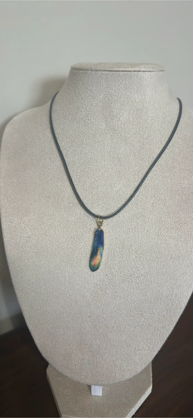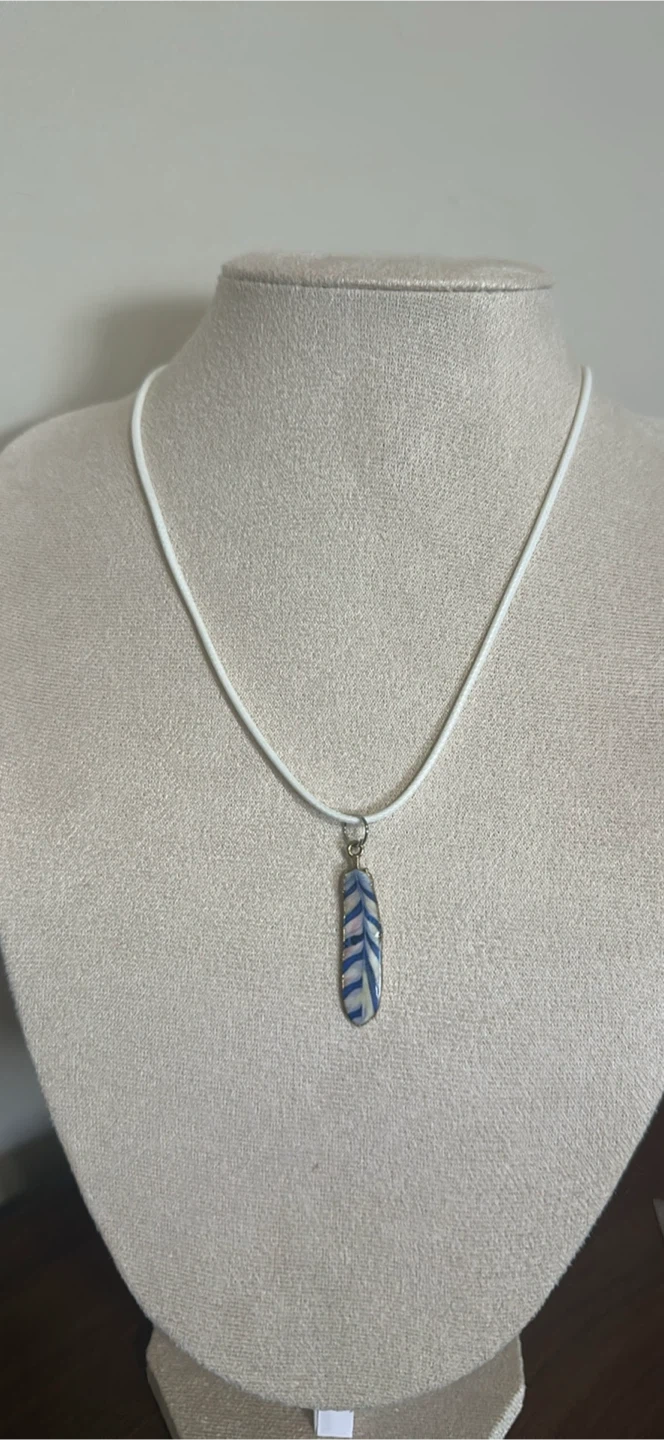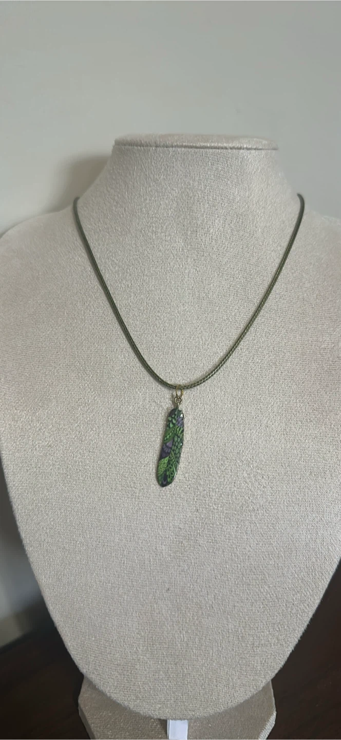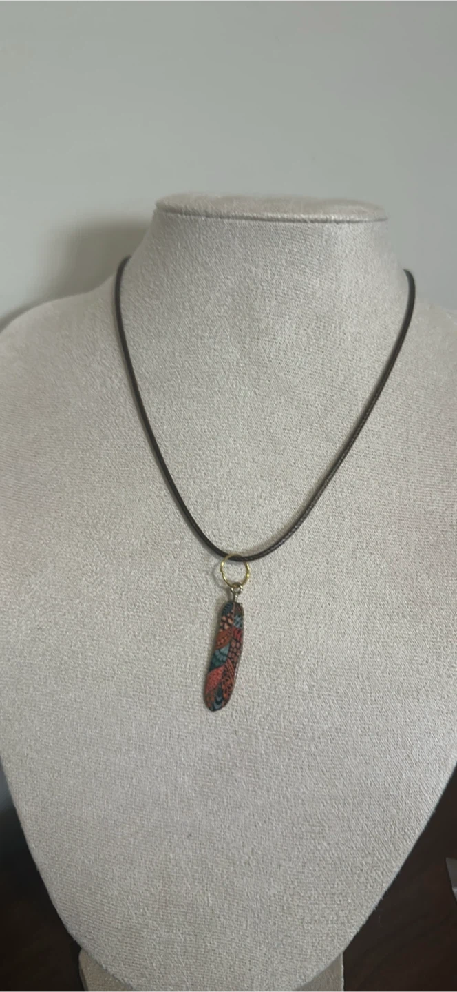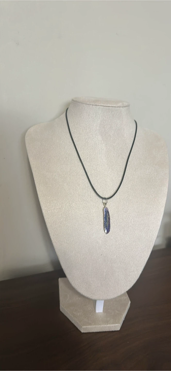 Check out these unique, handmade feather pendant necklaces! Each one features a different colour and design. They're perfect for adding a touch of personality to any outfit. The pendants are lightweight and hang from a simple cord necklace. $7.00 each