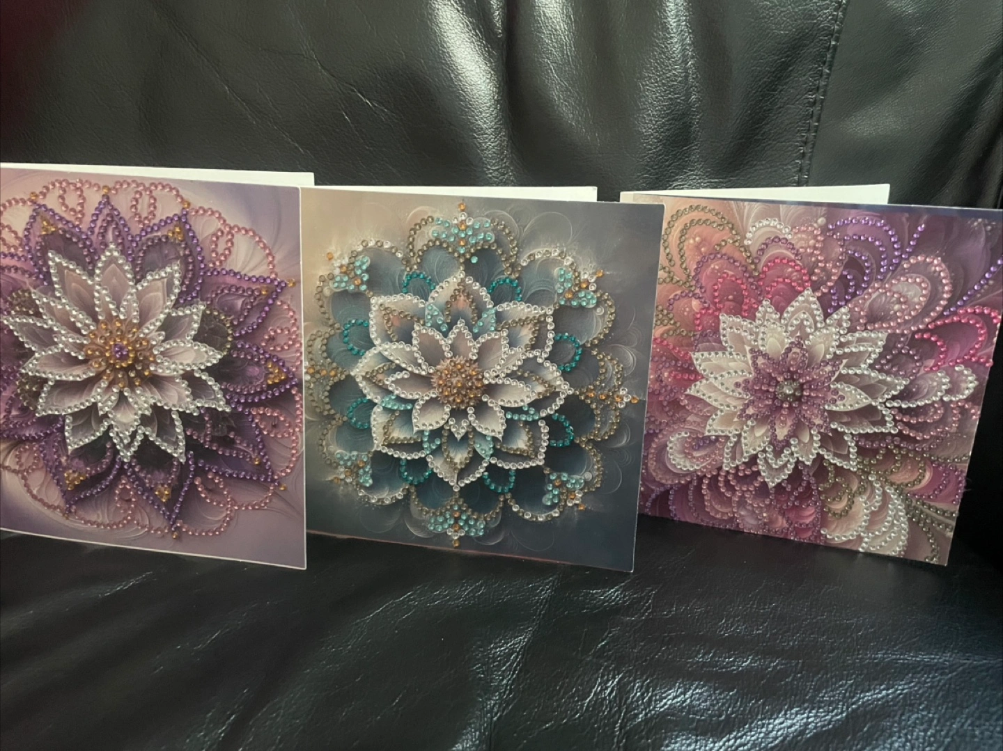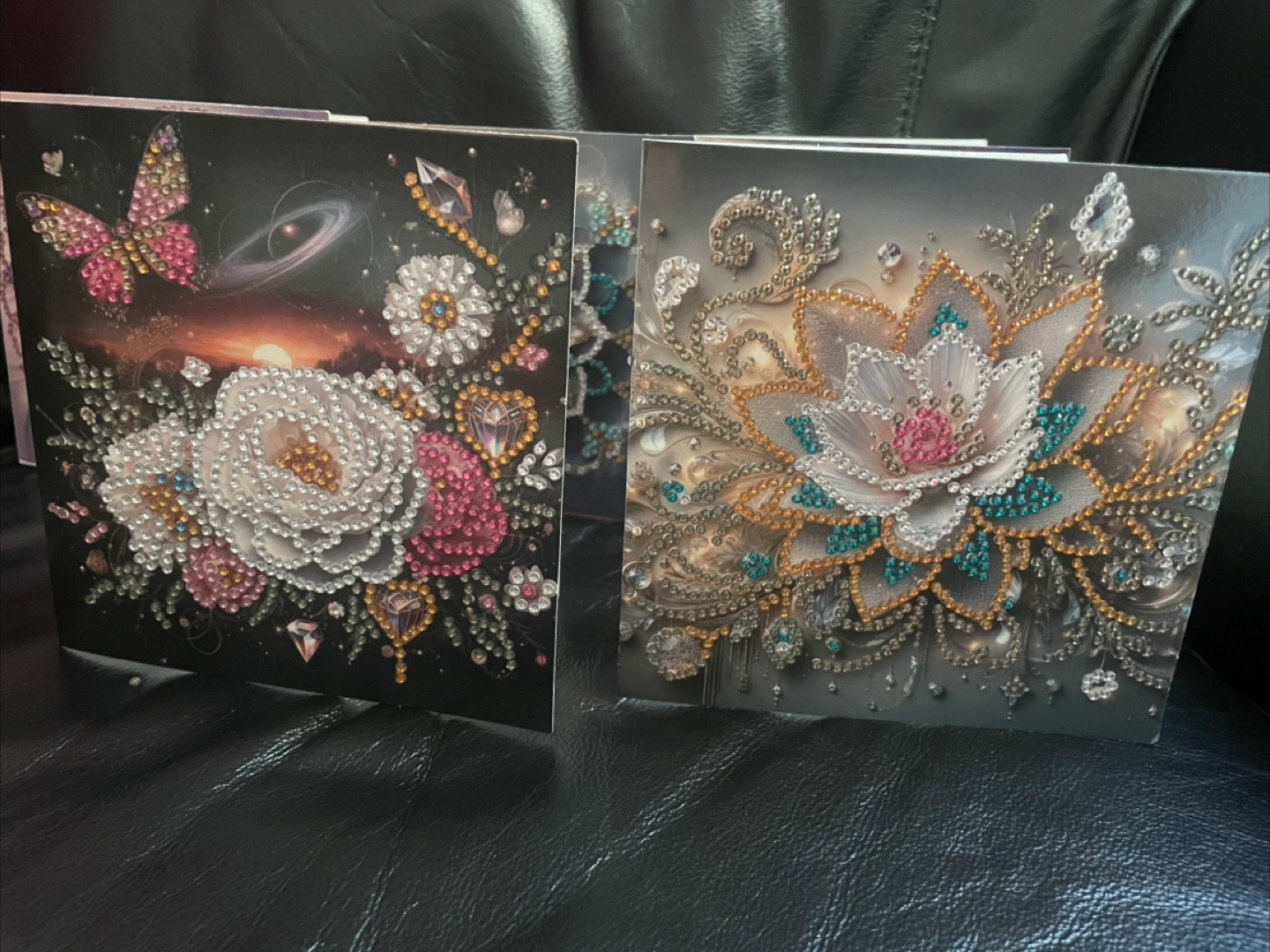 Selling a set of handmade cards with beautiful floral and gemstone embellishments. These cards are perfect for any occasion and add a personal touch to your greetings. Each card features unique designs and intricate details, making them a special keepsake for the recipient