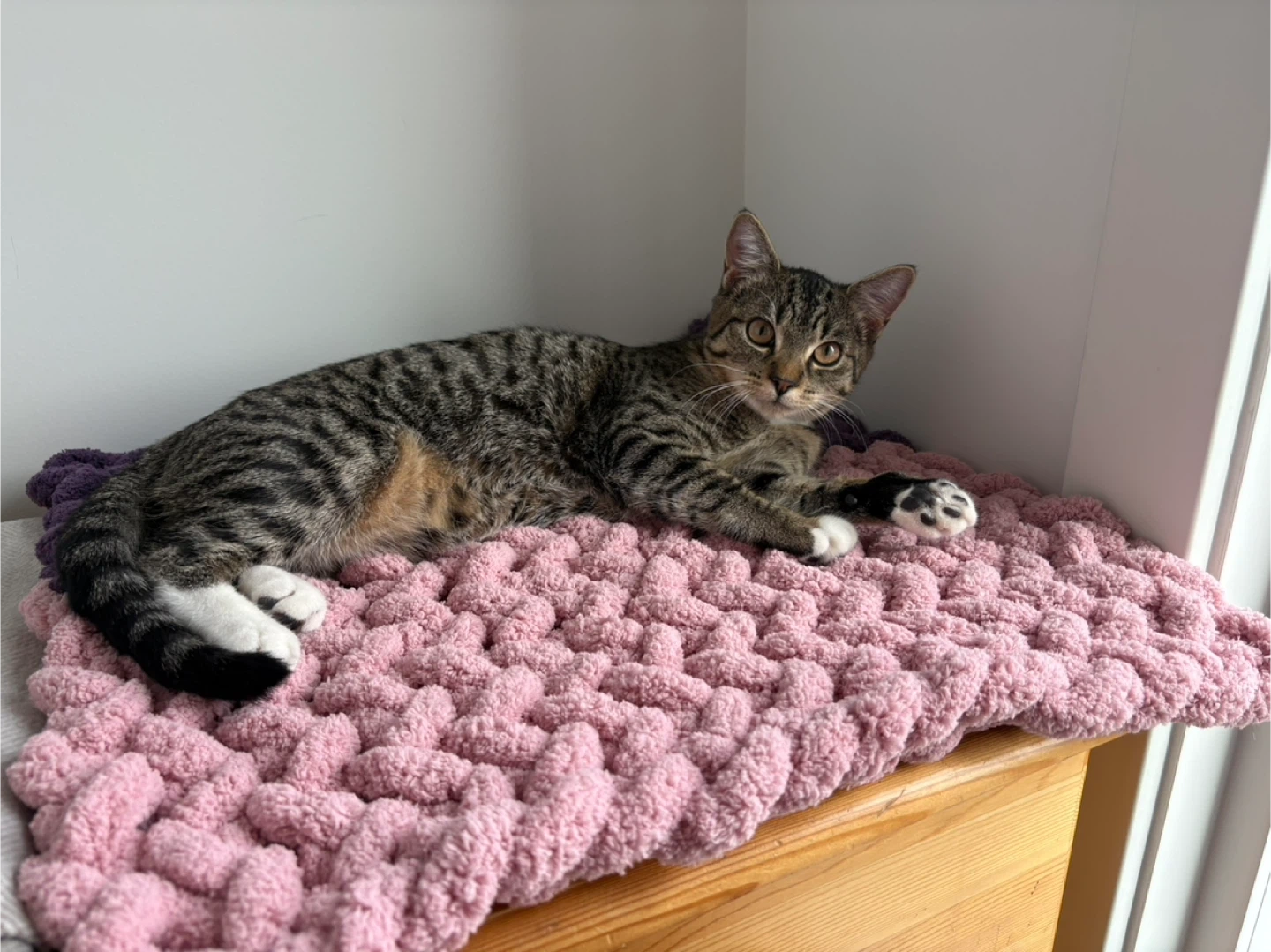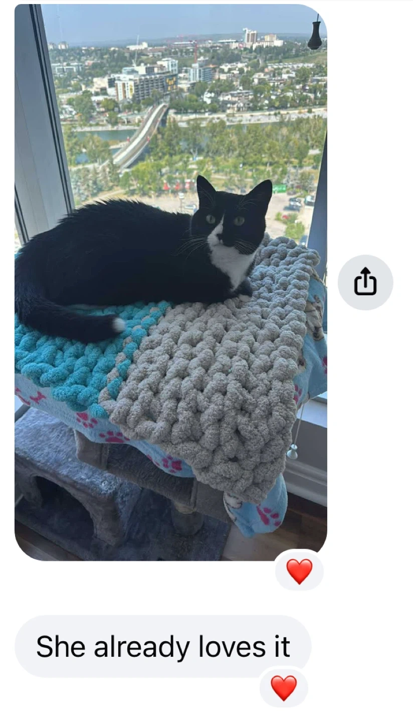 15I make these fluffy mats by hand β soft, comfy, and full of love π§Ά (My two girls ππ love them) Cats love them for naps, playtime or a good stretch after a bath πΎ 20x20 inches | Custom sizes available Pick-up in Elliston Village SE, Calgary β¨ Your pet will feel safe and cozy. And your furniture? Grateful π