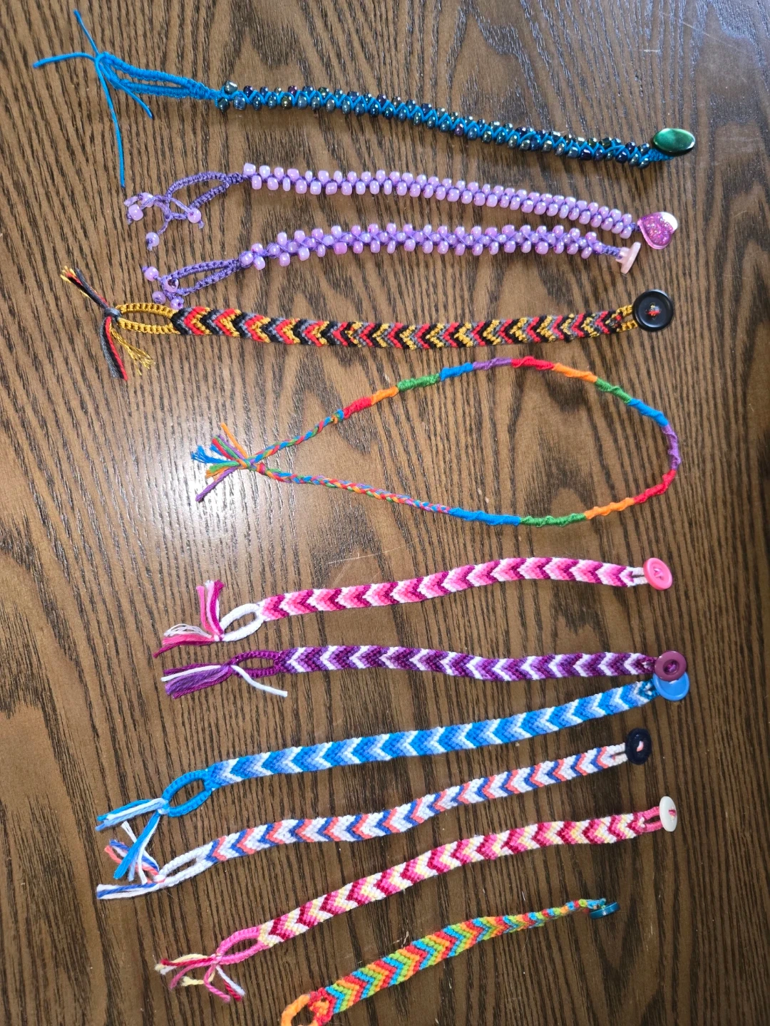 15Local handmade friendship bracelets ♡ Various colours and patterns ◇ All sizes ♧ Great for gifts or to wear yourself ♤ You choose colours, pattern and length or choose from. A large variety of already made bracelets!! Discount for multiples! 🏡 Pick up in St. James /Silver heights 🐱 loved home Check out my other listings!