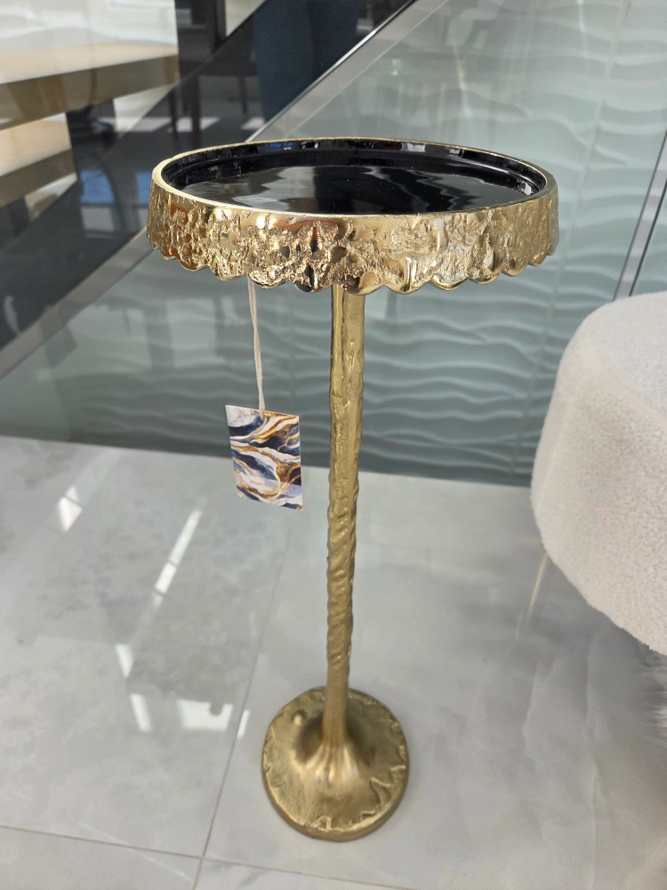 Dining Table with 6 Chairs - Dark Wood & Black Leather