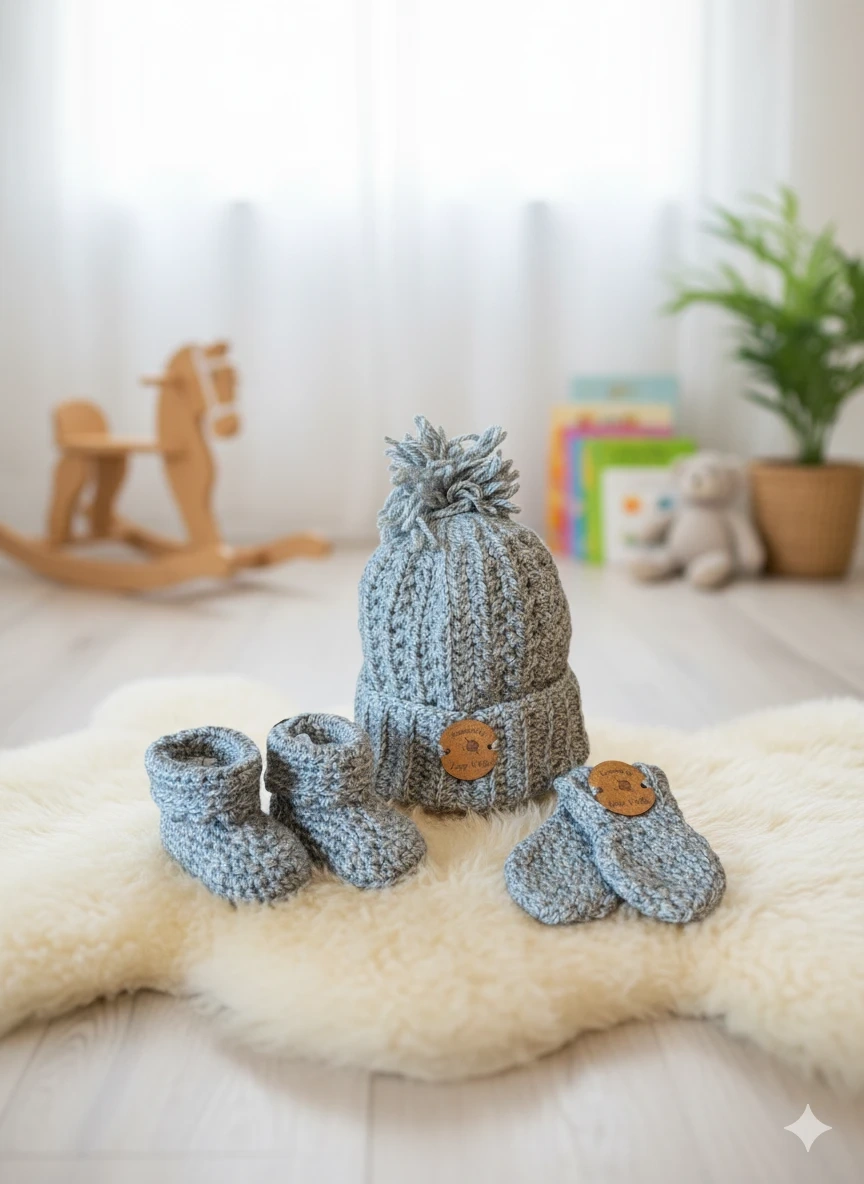Handmade Crochet Baby Booties, Mittens & Hat Set