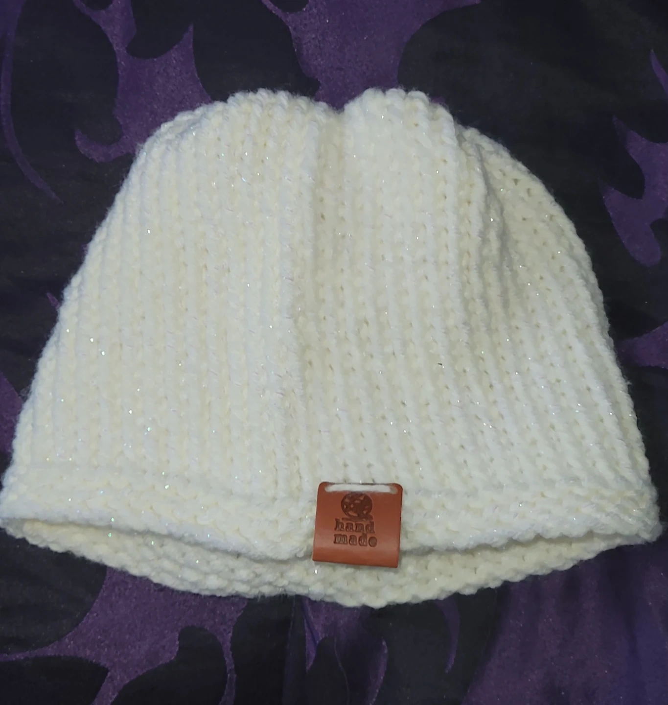 Handmade Purple & White Beanie
