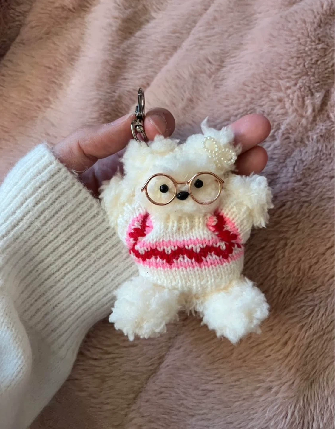 10✨ I made this keychain myself with wire! Its little arms and legs can move around and stay in any pose you like. The glasses come as a set — you can put them on or take them off! But if you’d like them fixed, I can glue them before sending. Making these cute dolls is my hobby, so if you’re interested, feel free to message me! 💛