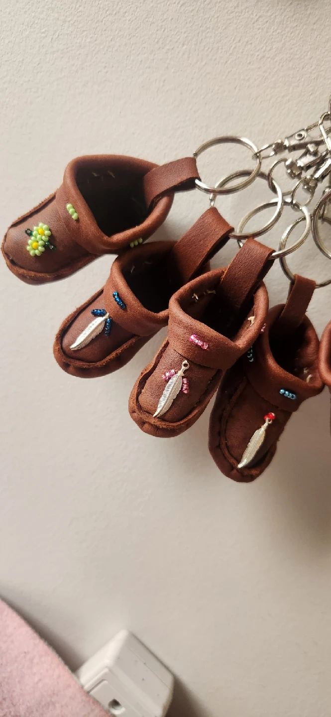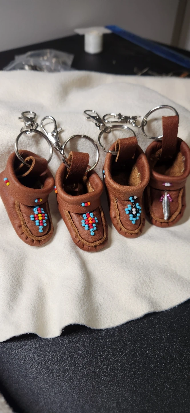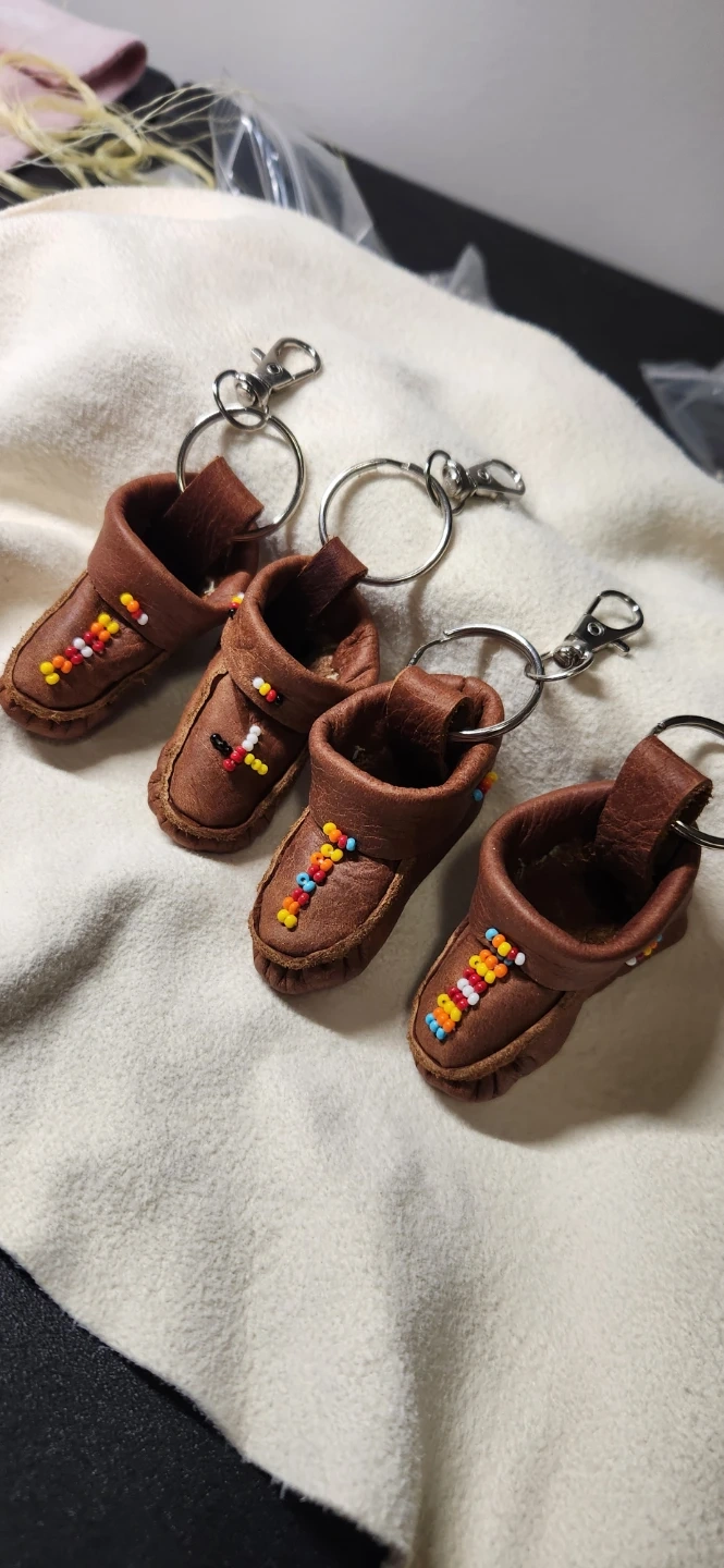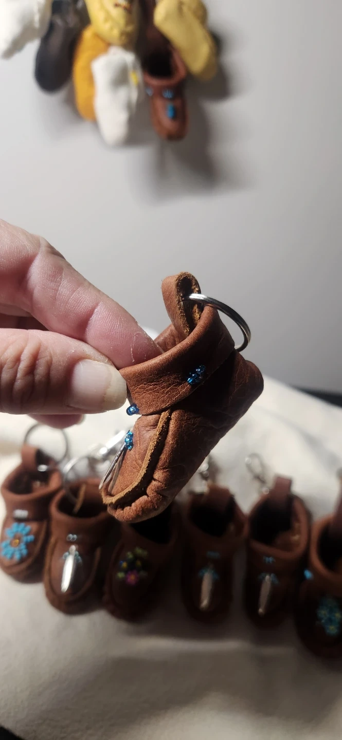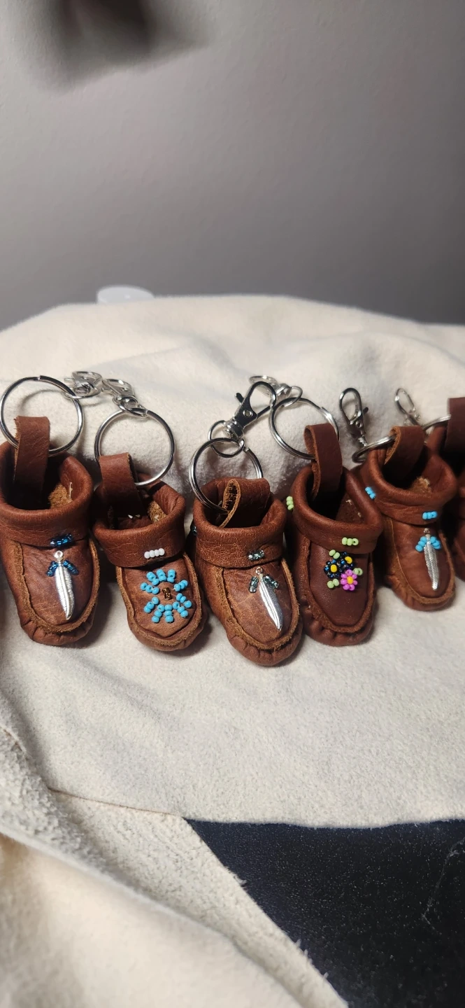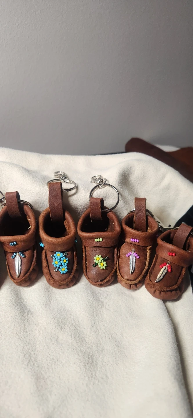 65Check out this adorable handmade moccasin keychain! It's got cute beadwork and a convenient clip. A unique little accessory to add some charm to your keys or bag...... 20 each