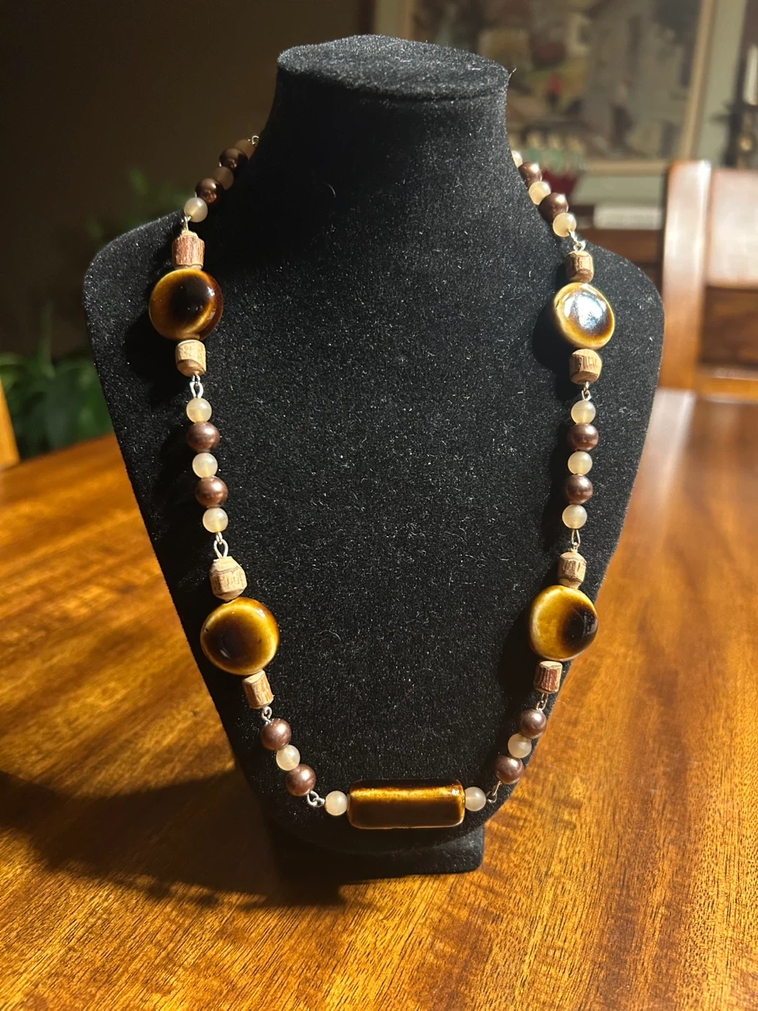 Warm Bronze, Gold, & Amber Toned Beaded Statement Necklace