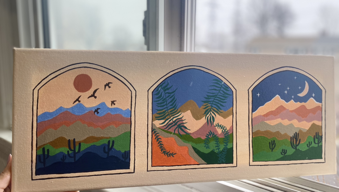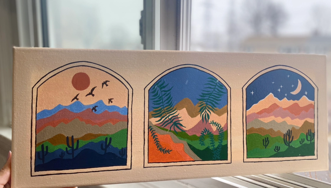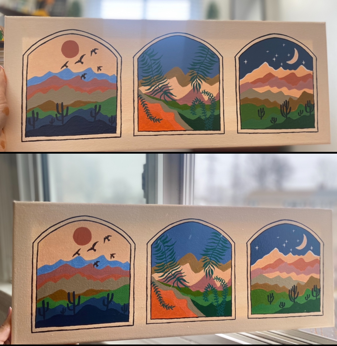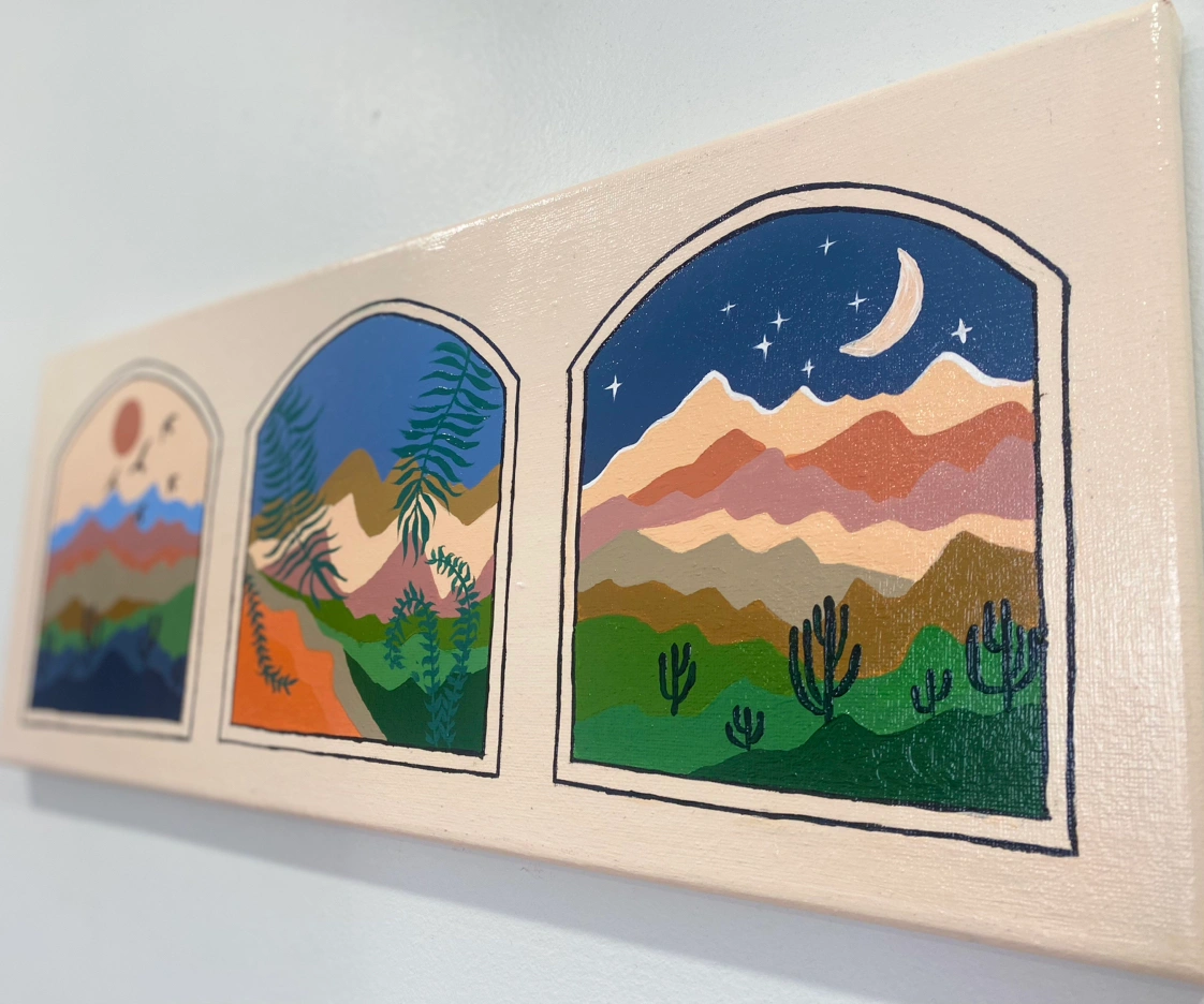• Day and Night (ETERNAL) - Art piece *Painted with love and kindness *Perfect for a beautiful small Bedroom or Living area, AIRbnb rooms. *Acrylic painting work 🎨 *20 x 8 inches (50x20 cm) *Free Delivery within GTA and Peel Region *Can be customized as per order- into three separate canvases and different sizes *Feel free to drop a comment to know more (Acrylic, Nature art, Abstract, Colourful and Thoughtful)