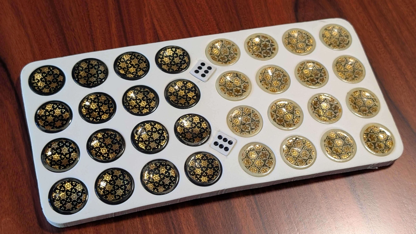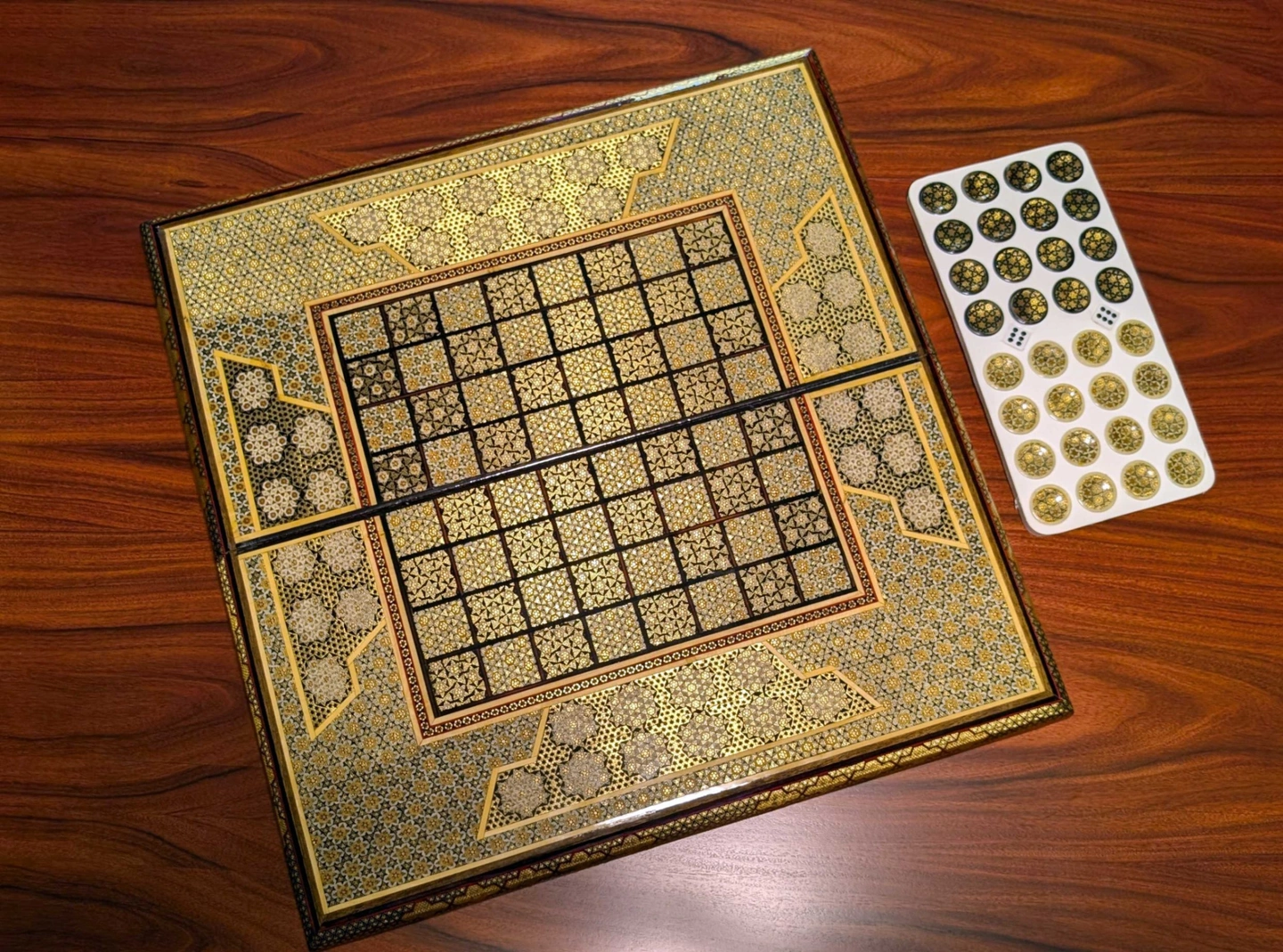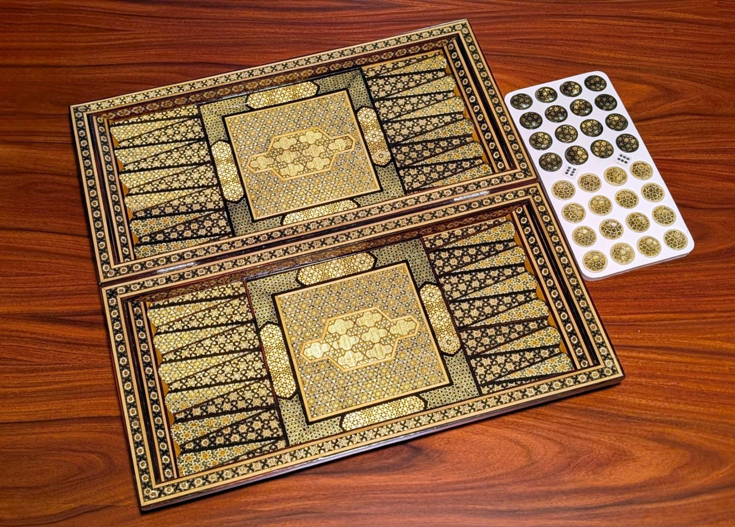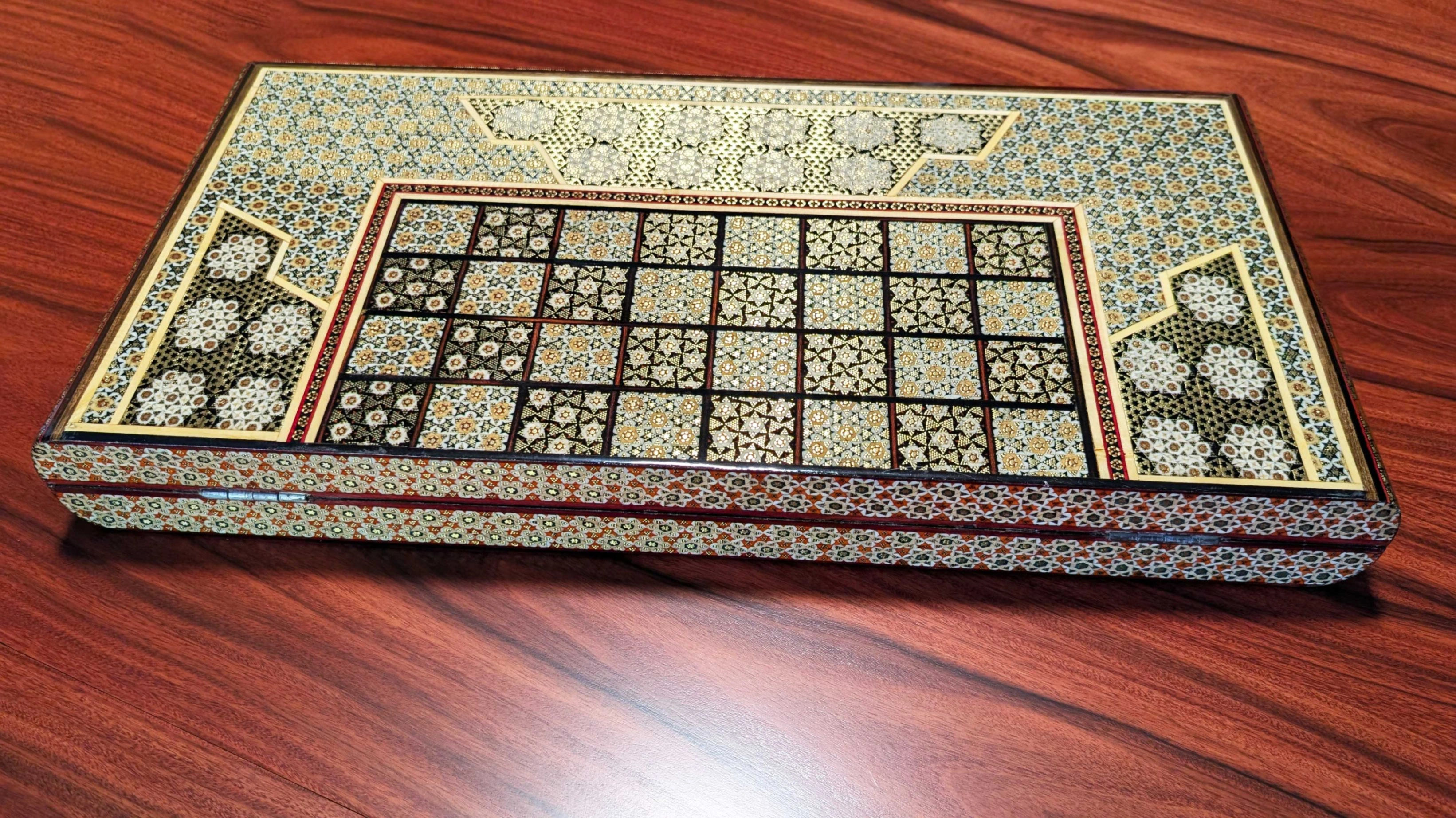 116If you are seeing this Ad, then this item is still available This sale is for 1 NEW, Persian Khatamkari Backgammon Board – Floral Geometric Inlay – Likely Tazhib Series – Handmade in Isfahan or Shiraz This Persian Khatam backgammon board is a beautifully crafted item featuring intricate inlay work. Khatam is a traditional Persian technique of marquetry, where different materials such as wood, bone, and metal are used to create detailed geometric patterns. This board is used for playing backgammon, a popular game in many cultures. Persian Khatam backgammon boards are not only functional but also serve as decorative pieces, showcasing the rich artistic traditions of the region. They are often used as gifts and are highly valued for their craftsmanship. • Measures: 50 x 50 x 6cm • Weight: 2280 gm Pick-up in Pickering ONLY This item comes from a smoke-free home.