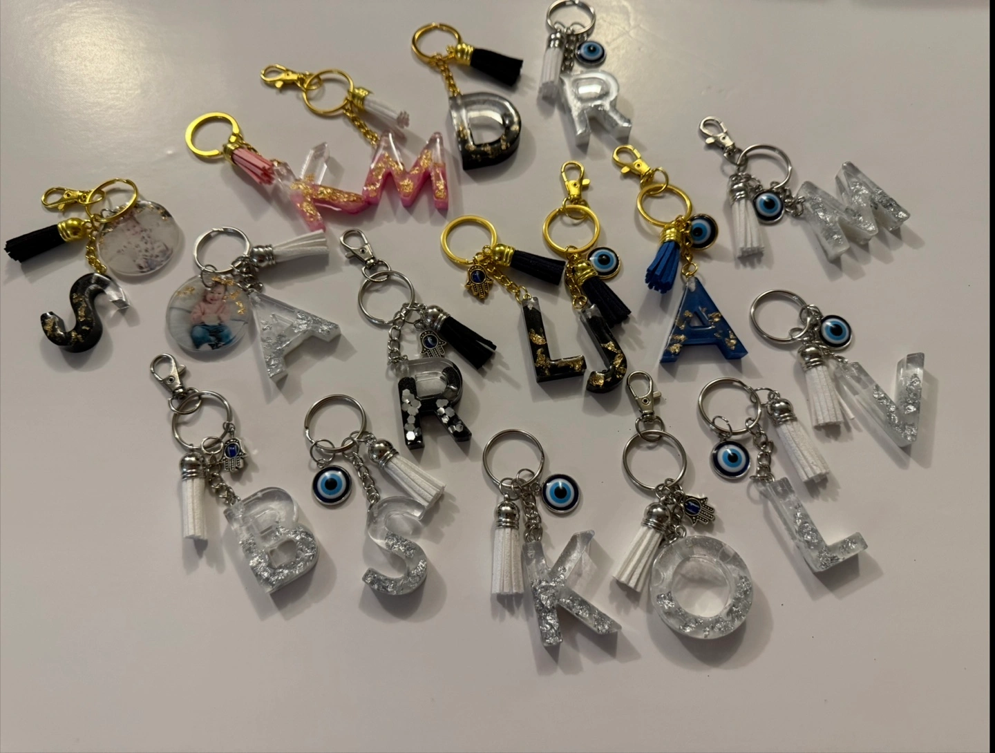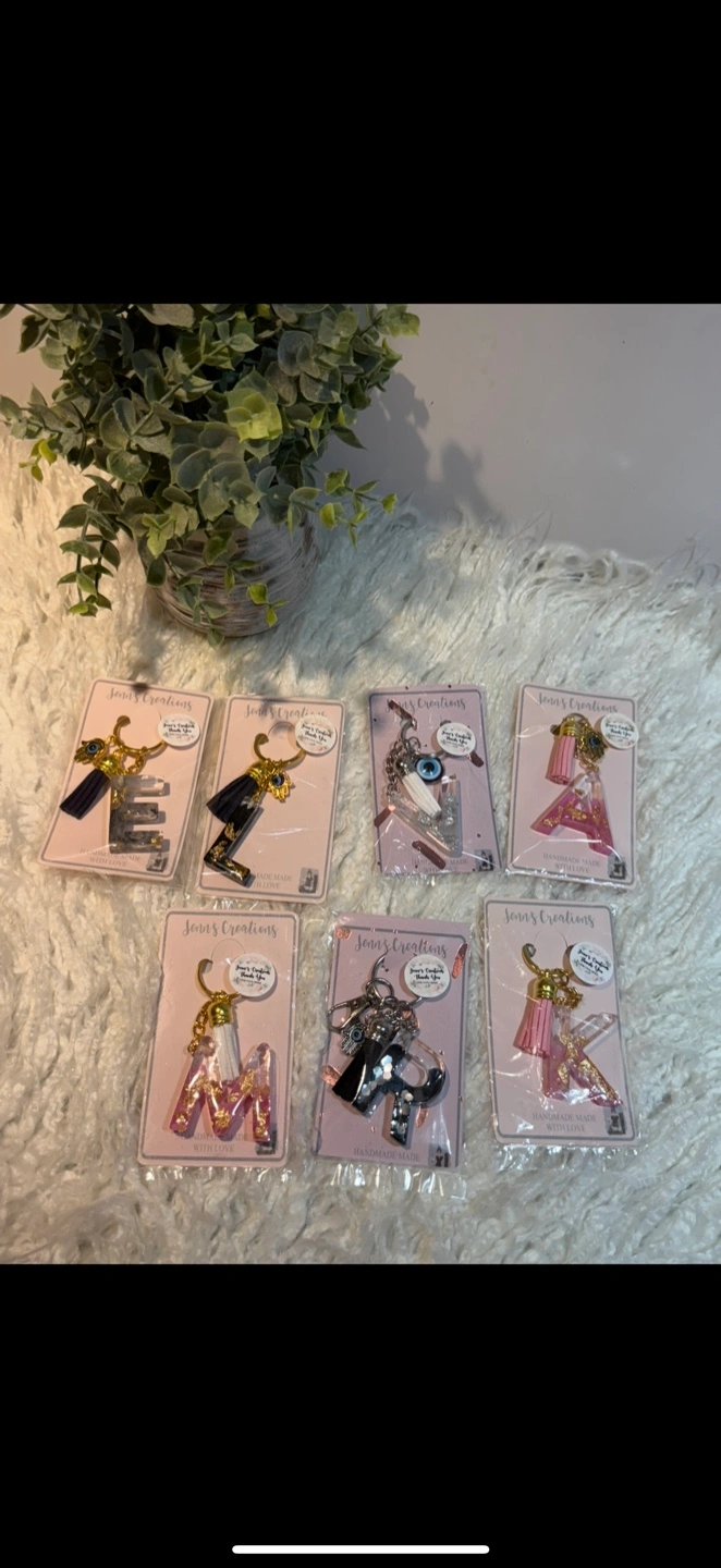 Check out these super cute handmade resin letter keychains! They're perfect for adding a personal touch to your keys or bag. Each one is unique and made with care. Grab your initial or a loved one's!