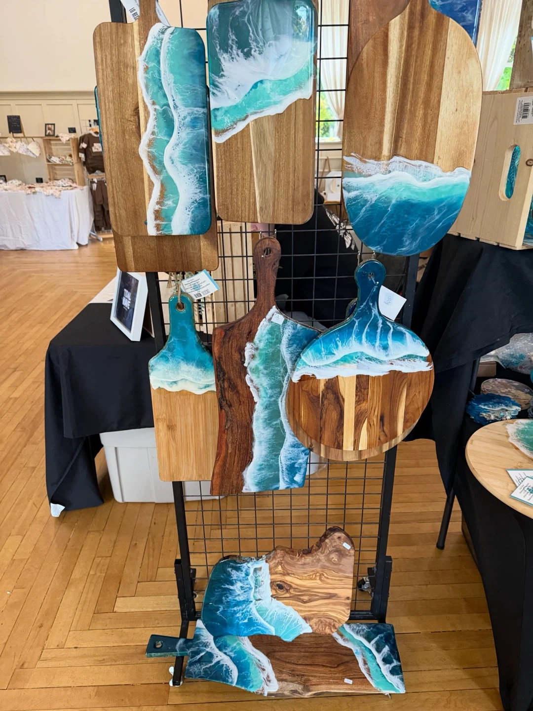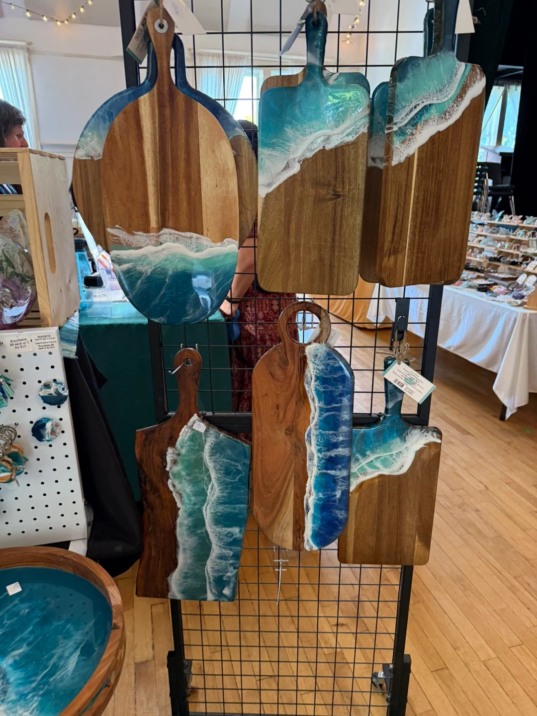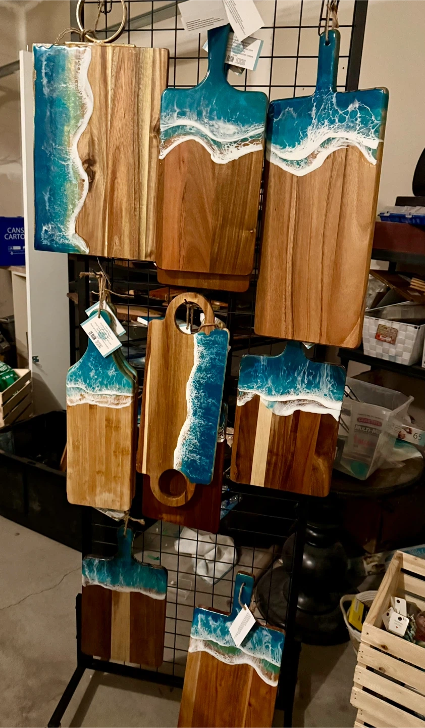 5These are handmade cutting boards with a unique resin design. They're perfect for adding a touch of artistry to your kitchen or as a beautiful serving piece. Each board is one-of-a-kind! Food safe L.o resin designs