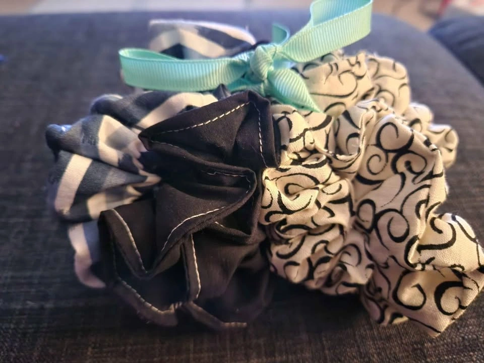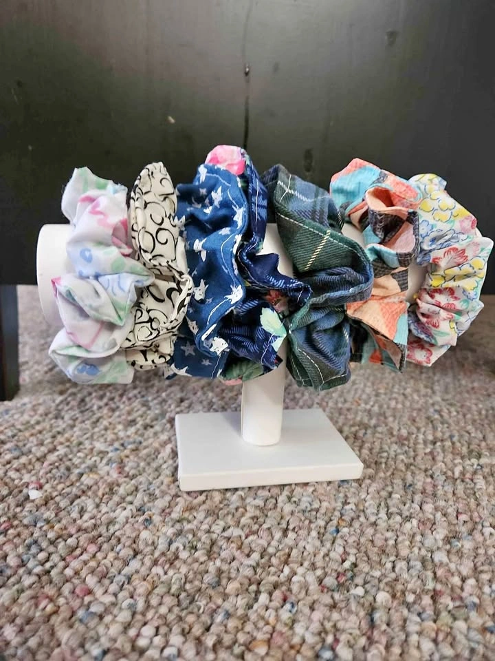 15Handmade scrunchies Made out of cotton or polyester $2.50 for 1 $10 for 5 Can do different pattern or colors if requested Pick up by fairview mall