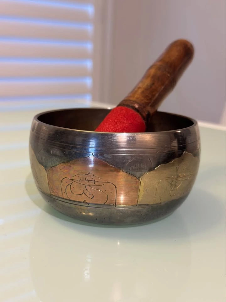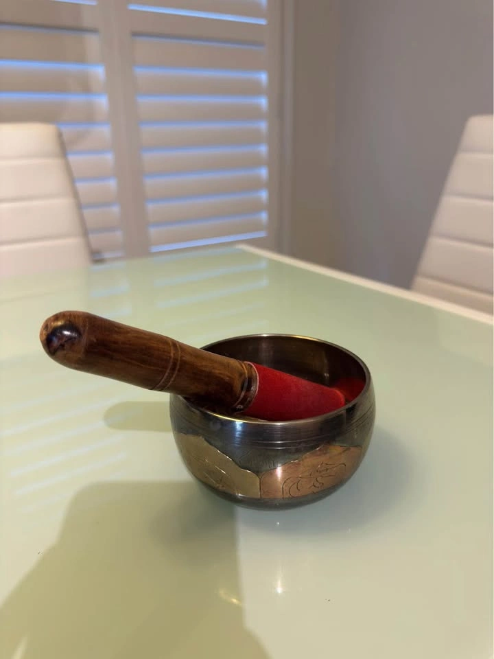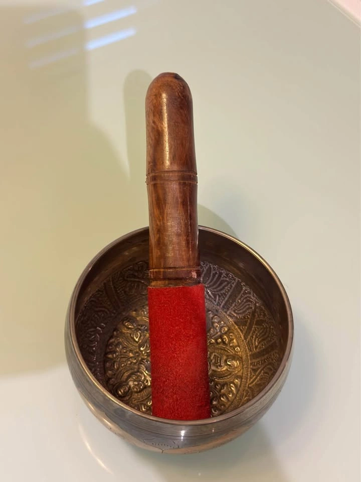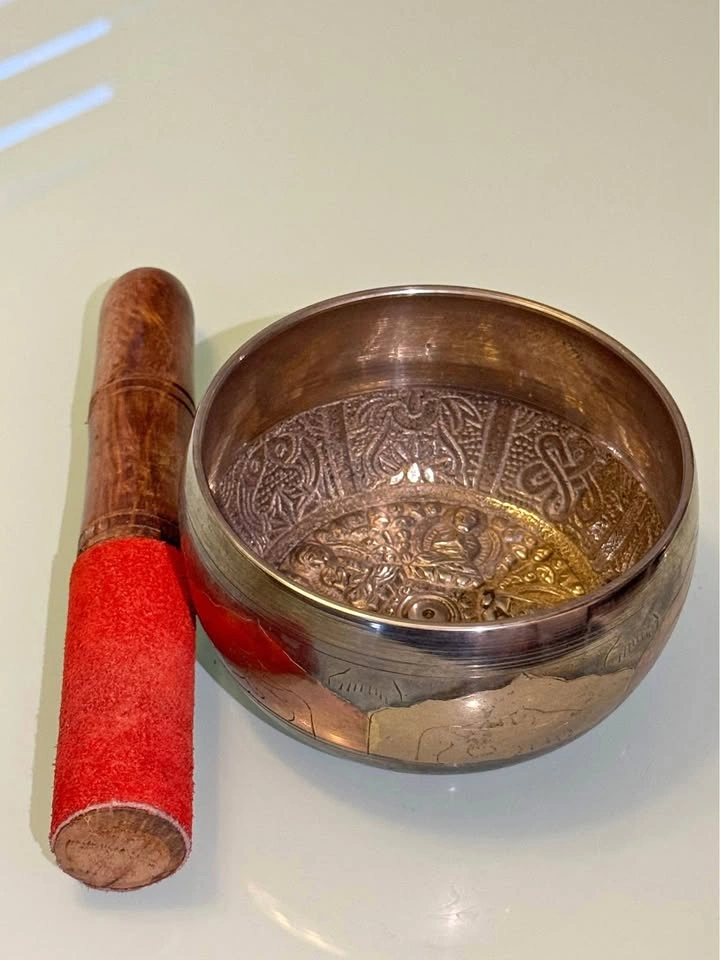 0The Tibetan singing bowl produces rich, soothing tones that support meditation, sound therapy, and mindfulness. The deep vibrations promote relaxation and stress relief during spiritual or wellness practices. Includes a handcrafted Tibetan singing bowl, easy-play striker, and a Tibetan-designed cushion. This singing bowl set is designed for use in sound baths, yoga, and meditation sessions, making it an essential tool for sound healing. Each meditation bowl is handcrafted in the Himalayas with traditional techniques, featuring an intricate and durable design. A unique piece of spiritual décor that makes a perfect spiritual or meditation gift.