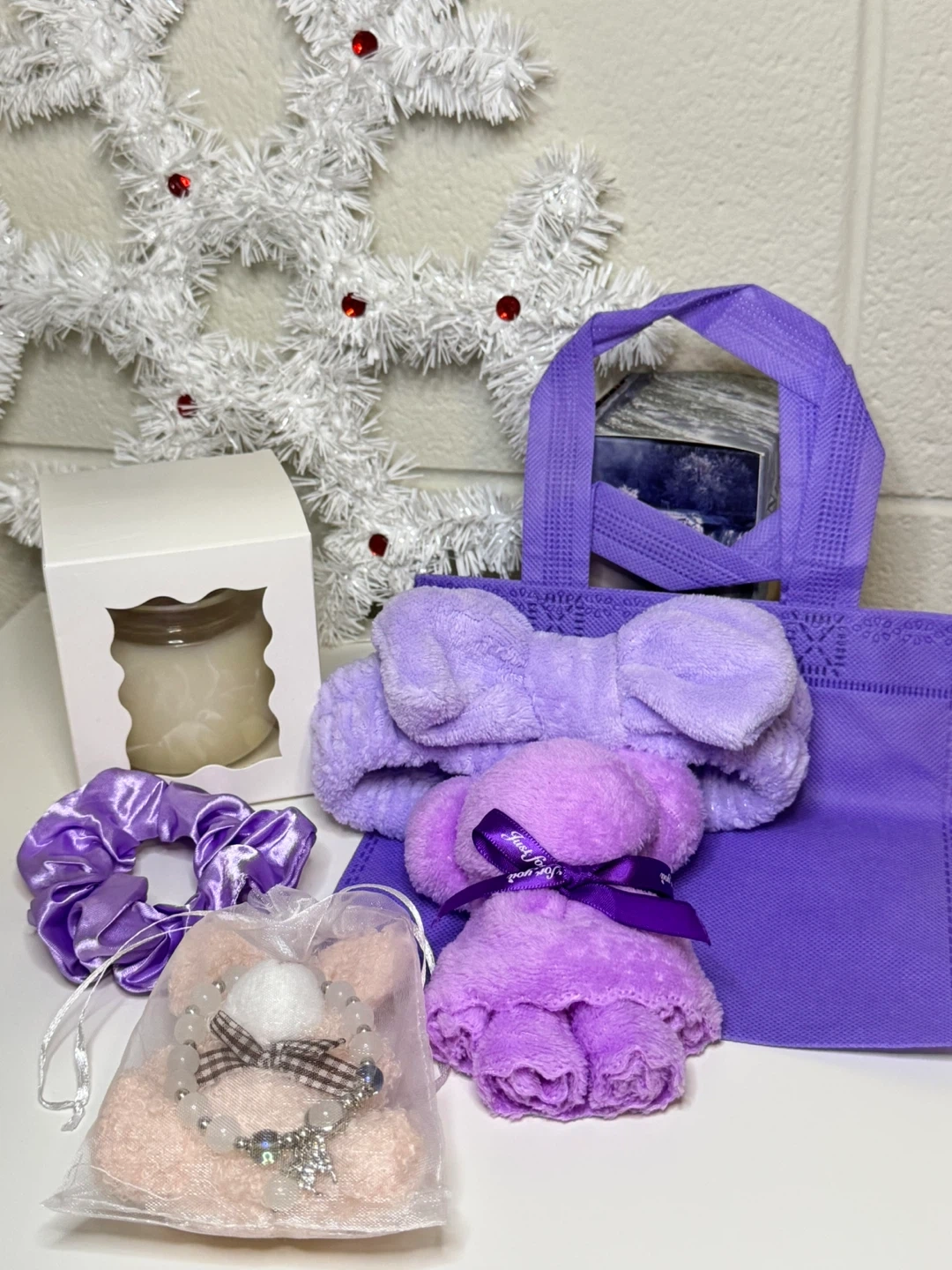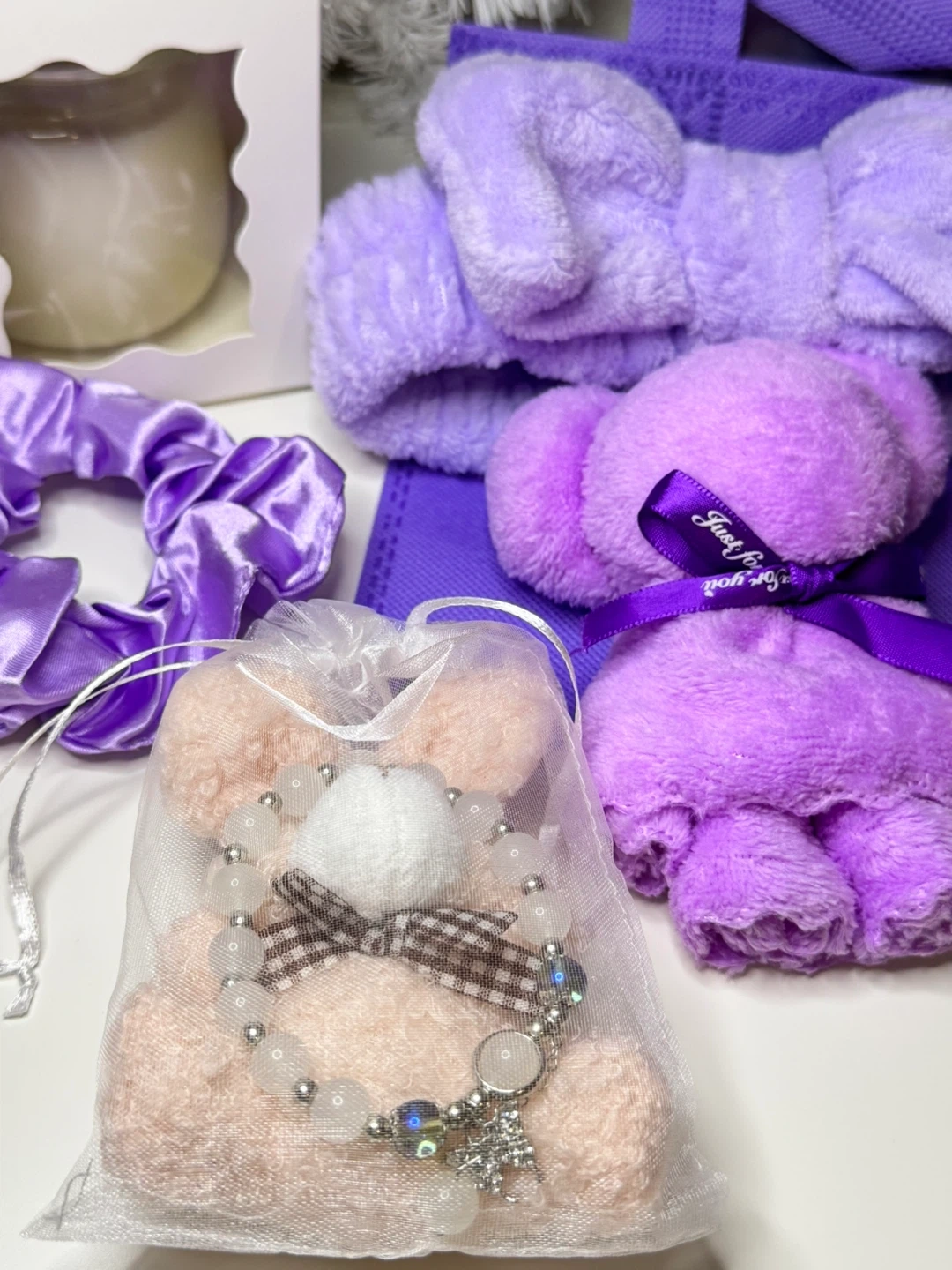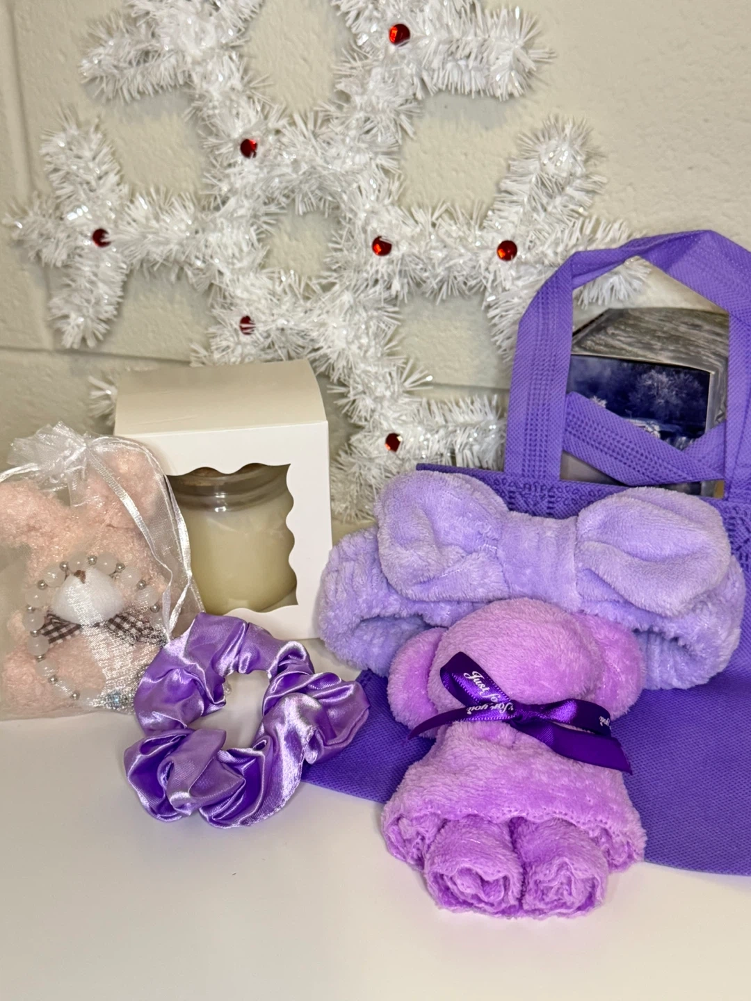 134π Lavender Self-Care Gift Box | Spa Gift Set for Her | Handmade Soy Candle | Christmas Gift Box | Relaxation Box | Ready to Gift Spoil yourself or someone special with this Lavender Self-Care Gift Box β a perfect combination of softness, coziness, and a touch of handmade charm. Beautifully curated in calming lavender tones, this box makes an ideal present for birthdays, holidays, or just because π« β¨ Box Includes: β’ π§Έ Cute bear-shaped towel (soft, plush & reusable) β’ π Bow headband β perfect for skincare or spa routines β’ π Satin scrunchie (gentle on hair) β’ π Reusable lavender tote bag β’ π―οΈ Handmade soy candle (7oz) with a natural cork lid β clean-burning, eco-friendly, and long-lasting β’ π Gift bracelet in an organza pouch (bonus surprise item!) πΏ Details: β’ Candle made from 100% natural soy wax β paraben & phthalate free β’ Box is hand-packed with care in Ontario, Canada β’ Comes in a sturdy kraft box β ready to gift, no wrapping needed π Perfect for: Birthdays β’ Christmas β’ Bridesmaid gifts β’ Thank you gifts β’ Relaxation and self-care days Give the gift of calm, comfort, and handmade warmth with this cozy lavender box.