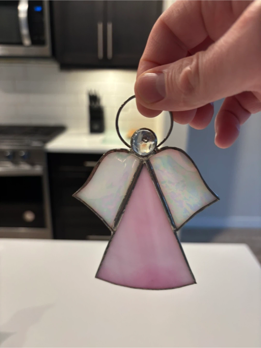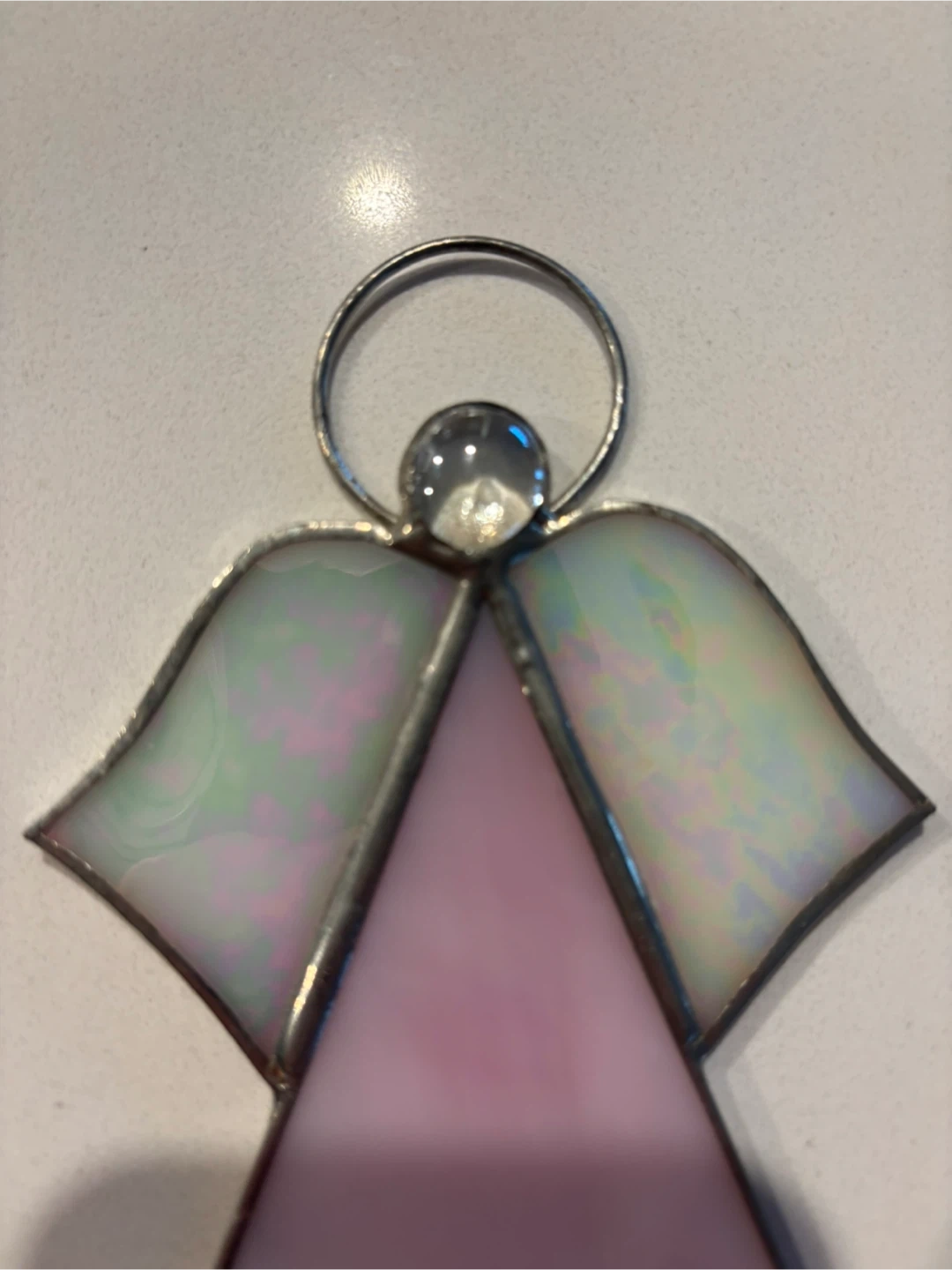 Handmade Stained Glass Angel Ornament For Sale. Excellent - like new condition. Handmade sun catcher holiday decor. 5” x 3.5” in size. $25 firm. East Regina pick up. Listed on other sites.