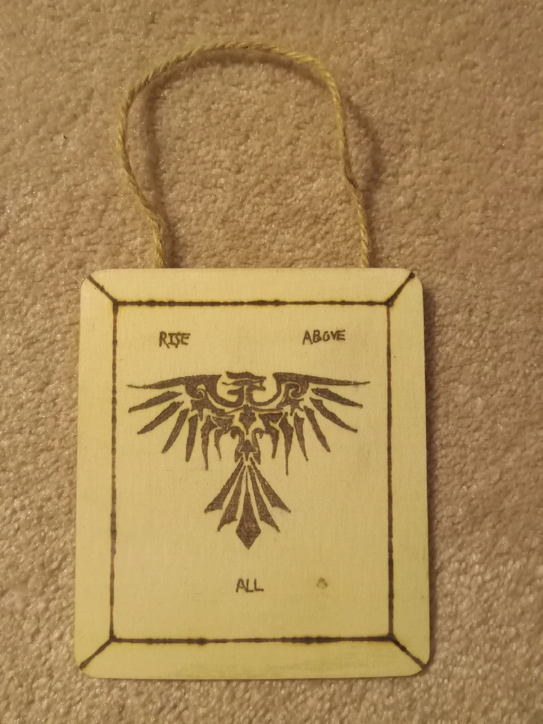 15Selling a cute handmade wooden ornament. It features an phoenix design and the words "Rise Above All". Perfect for adding a touch of unique charm to your home!