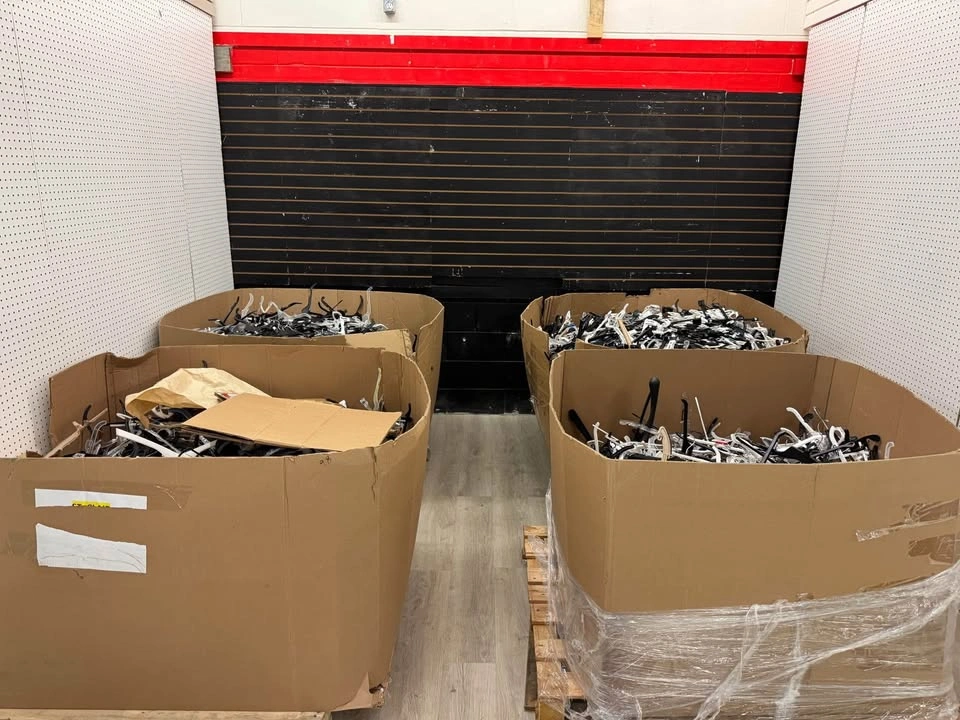 Store relocating. 4 skids available. Thousands per skid — good assortment of regular hangers and jeans & skirts hangers. Asking $200 for all 4 skids. $50 if just for 1 skid. Negotiable if taking all. Bring transportation. These are on pallets. Pump truck available at location so you don’t need to bring one. Location: Oshawa Markets 555 Simcoe St. South Oshawa, ON L1H 8K8 Message seller to schedule pickup.