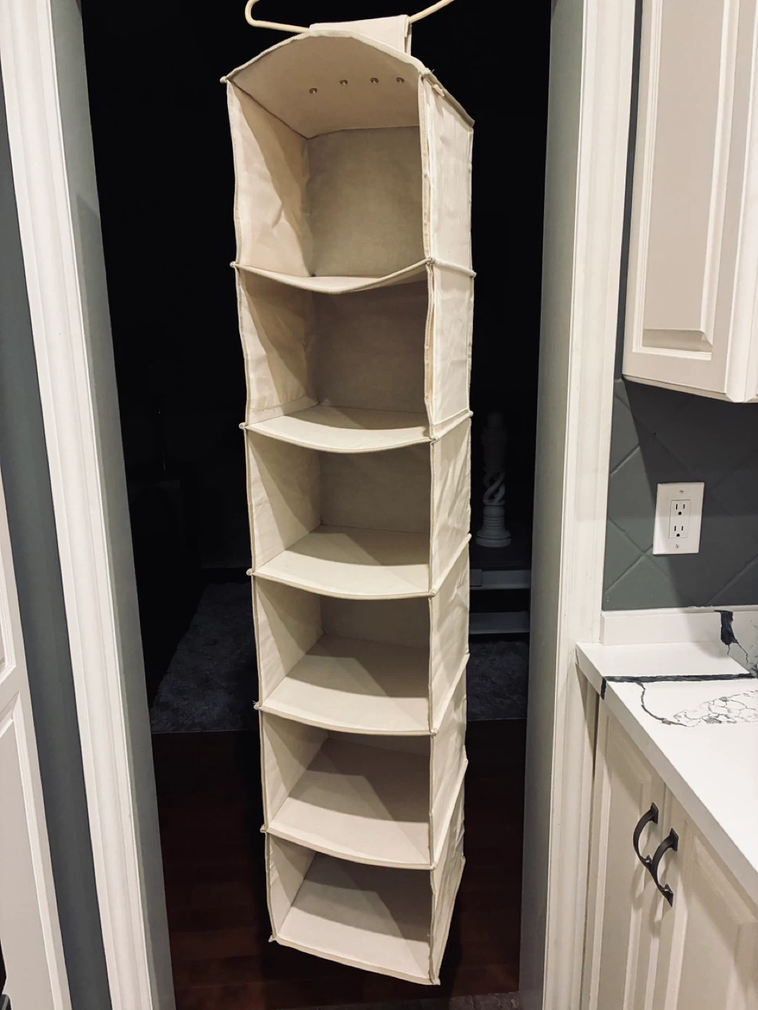 Here's a handy 6-shelf hanging closet organizer! It's perfect for adding extra storage to your closet. It's in great condition and ready to help you organize your space