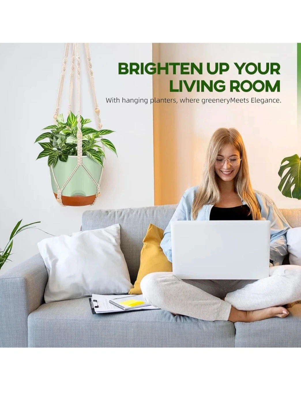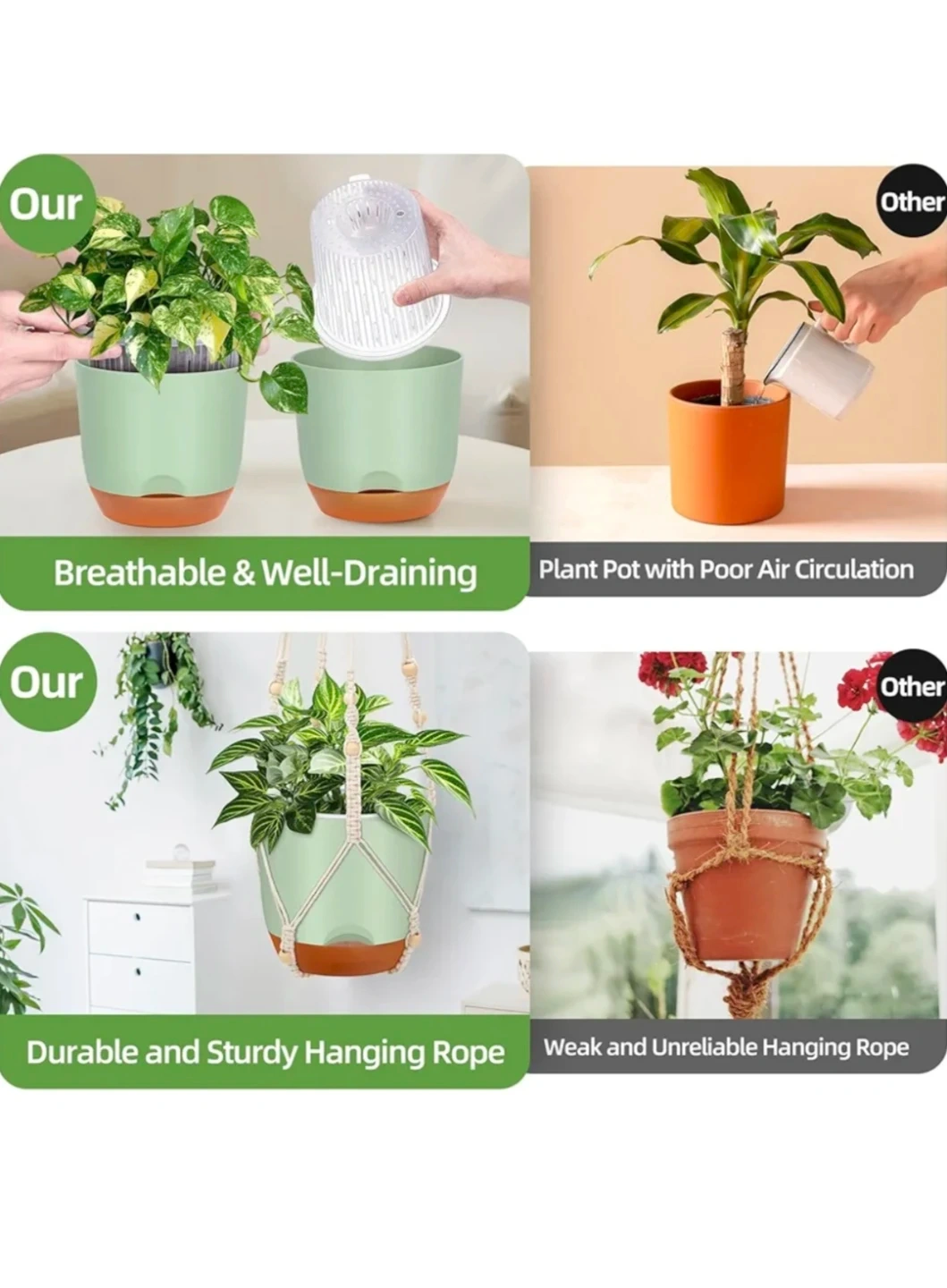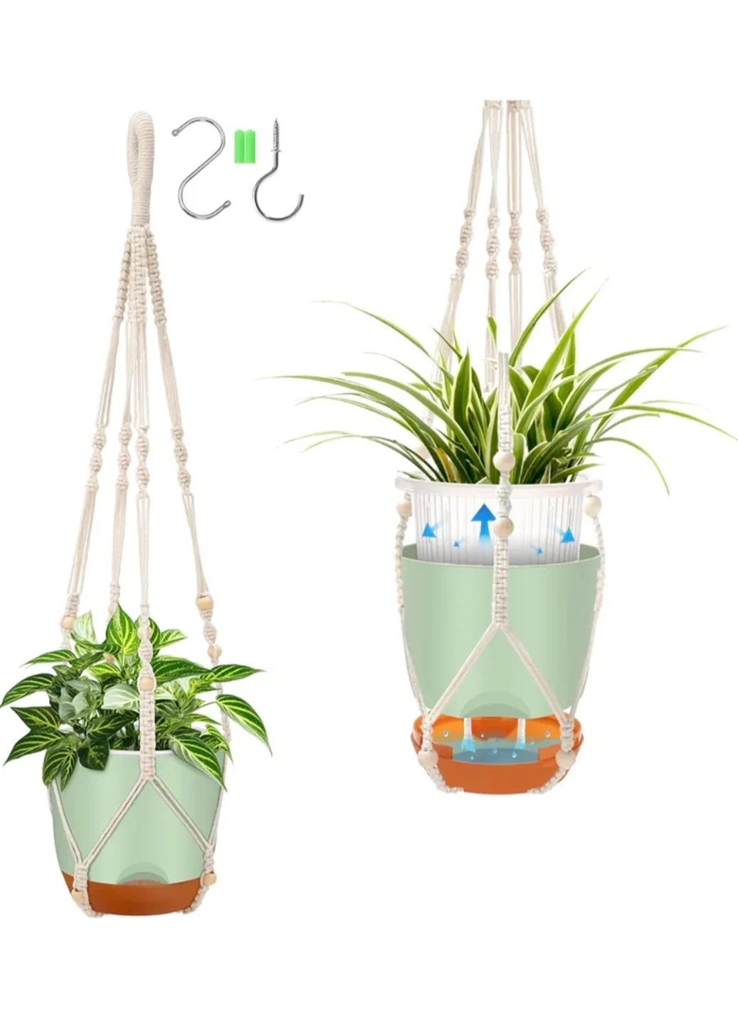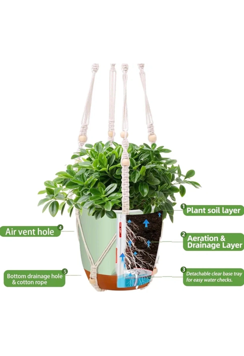 16This hanging planter is perfect for brightening up any living room! It features a self-watering pot with aeration and drainage holes, ensuring your plants stay healthy. The water catch tray and easy-fill opening make watering a breeze. The durable and sturdy hanging rope adds a touch of elegance to your space